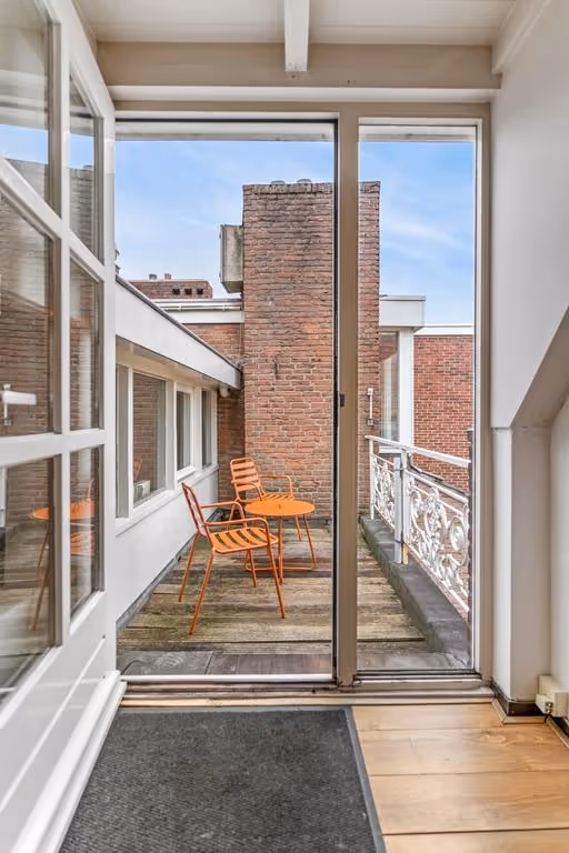 Vanuit de woonkamer is het balkon te bereiken. Deze fijne plek aan de achterzijde van het pand is gelegen op het Westen, dus je geniet hier heerlijk van de avondzon.