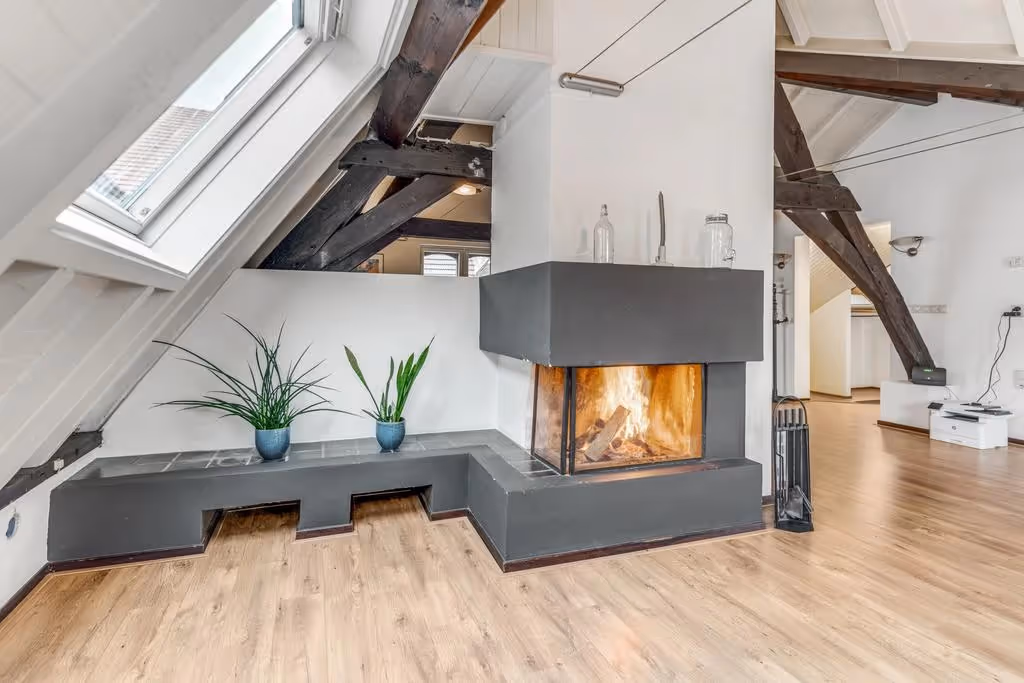 - Ruime living met open haard en keuken