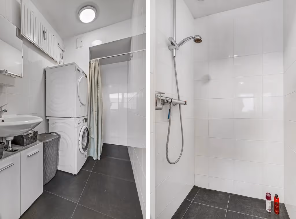 De slaapkamer van dit appartement grenst aan de zijde van de galerij en is ook mooi licht. Vanuit de slaapkamer is de badkamer te bereiken. Deze badkamer heeft een wastafel, inloopdouche en wasmachineaansluiting. Tenslotte ligt in het appartement nog een apart toilet, bereikbaar via de hal.