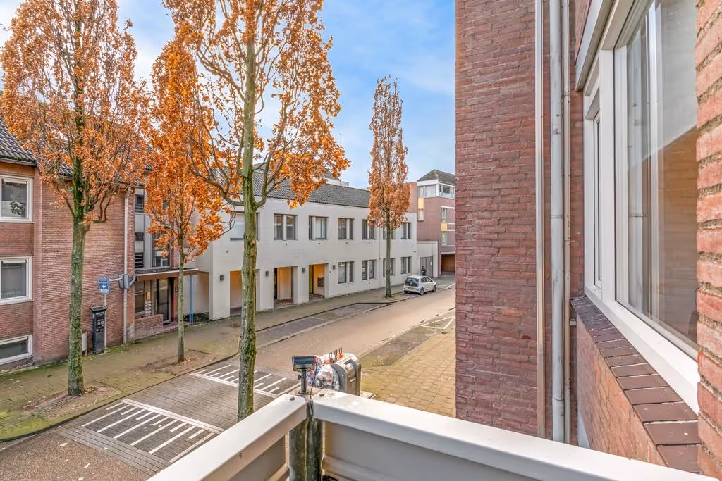 Vanuit de woonkamer is het balkon te bereiken. Deze fijne buitenruimte is voldoende ruim en kijkt mooi weg, over de Mariagardestraat.
