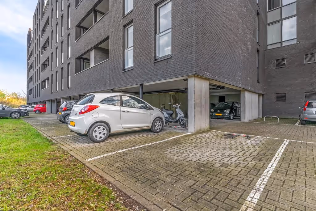 Parkeren is mogelijk op de privé parkeerplaats, onder het complex. De mogelijkheid bestaat om een extra, 2e parkeerplaats aan te kopen. Tevens heeft dit appartement nog een eigen berging, met de afmetingen 2,4 x 1,77.