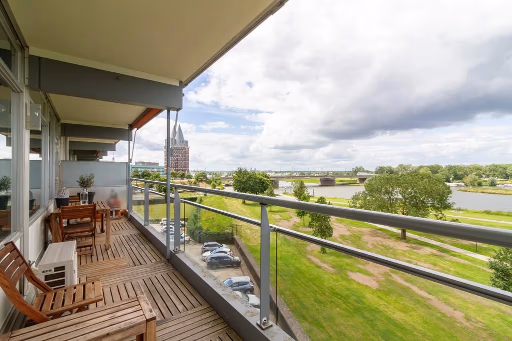 Op een prachtige locatie, met een schitterend uitzicht over de Maas en aan de rand van de binnenstad van Roermond, ligt het appartement Arlo 49. Dit appartement heeft 2 ruime slaapkamers, een groot balkon en een berging in het souterrain. De kozijnen zijn van aluminium, met HR++ beglazing, dus aan de energierekening is ook al gedacht. Mooi toch?