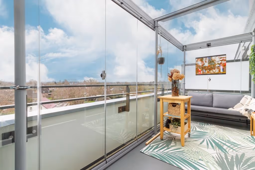 Tenslotte beschikt dit moderne appartement over een fraai dakterras. Hier geniet u alle seizoenen van mooie vergezichten en een heerlijk uitzicht. Door de luxe serre / overkapping, waarvan alle glazen zijpuien volledig open kunnen, zit u hier vanaf het vroege voorjaar, tot ver in de herfst. Dat is genieten, toch?