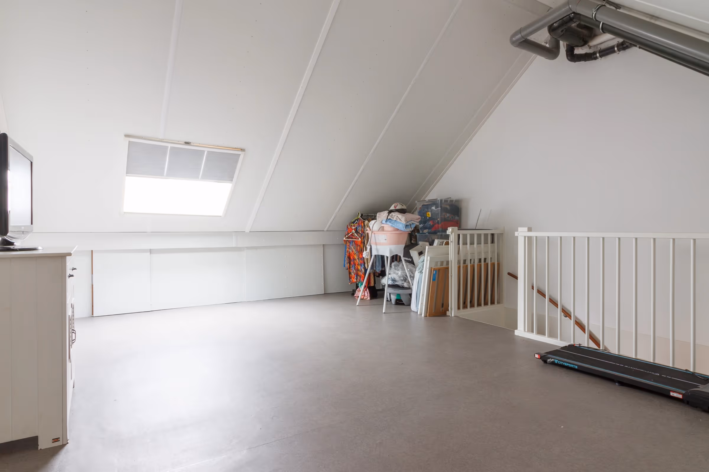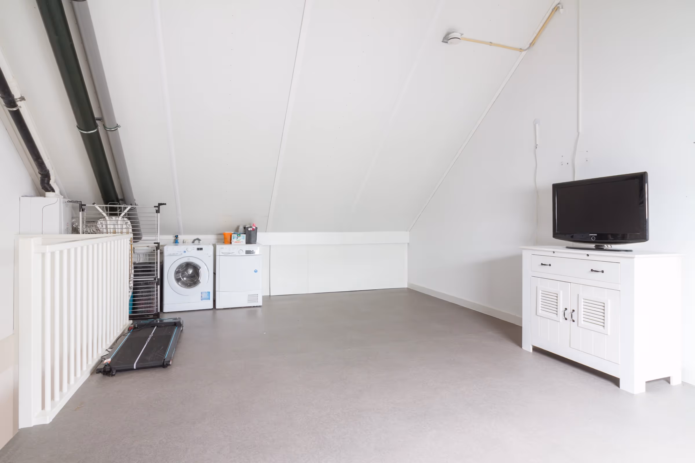 Via een vaste trap is de zolderverdieping bereikbaar. Deze riante zolder beschikt over een mooie hoogte, waardoor de kamer een zeer ruimtelijke beleving heeft. Momenteel is deze verdieping als was- en bergruimte in gebruik, maar het is prima mogelijk om hier een 4e slaapkamer te realiseren. De ruimte beschikt al over een groot dakraam en ook het plaatsen van een dakkapel is mogelijk. Tenslotte zijn op deze zolderverdieping de technische installaties geplaatst, bestaande uit een CV combiketel (Remeha, 2017, eigendom), een mechanische ventilatie en de collector van de zonnepanelen.
