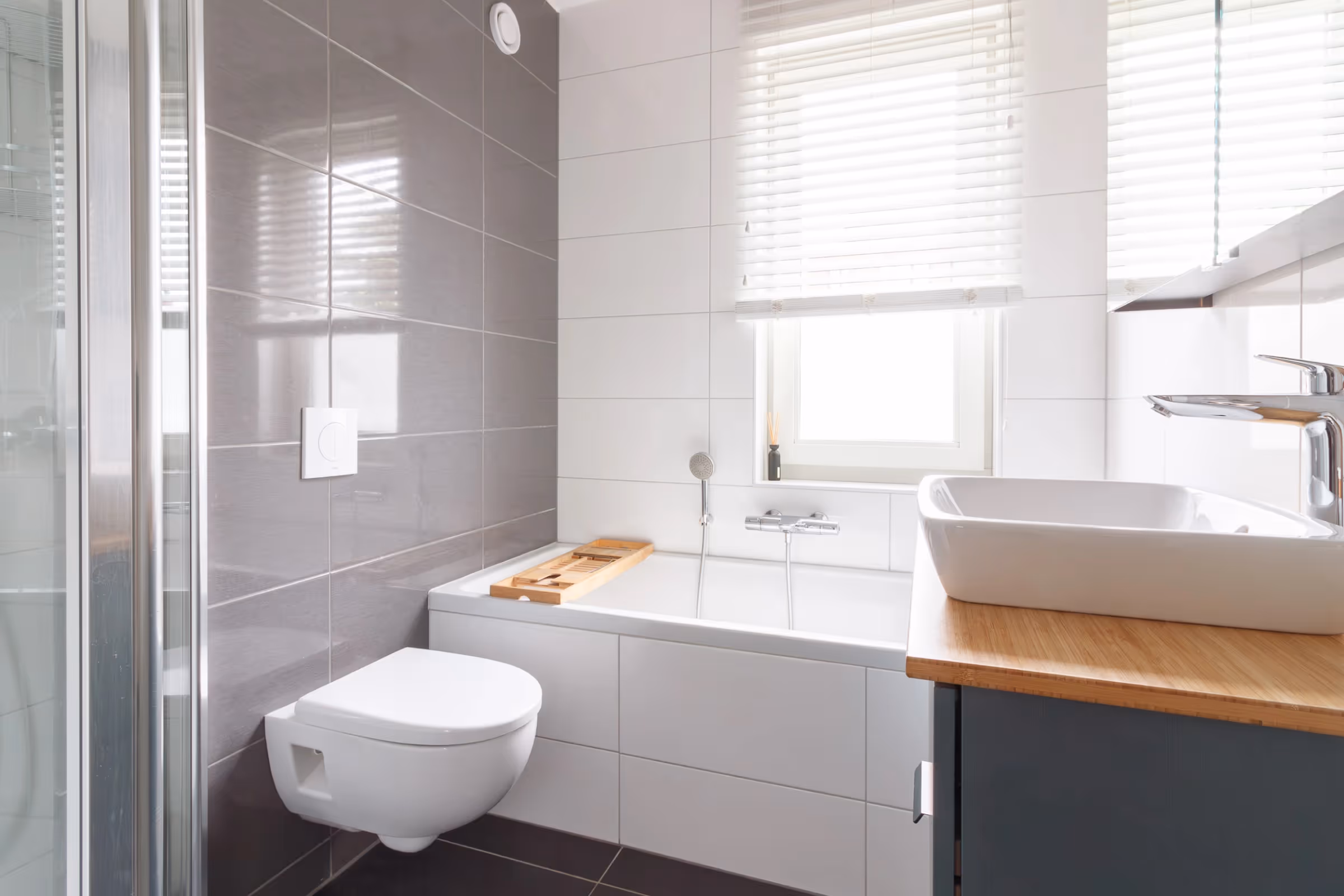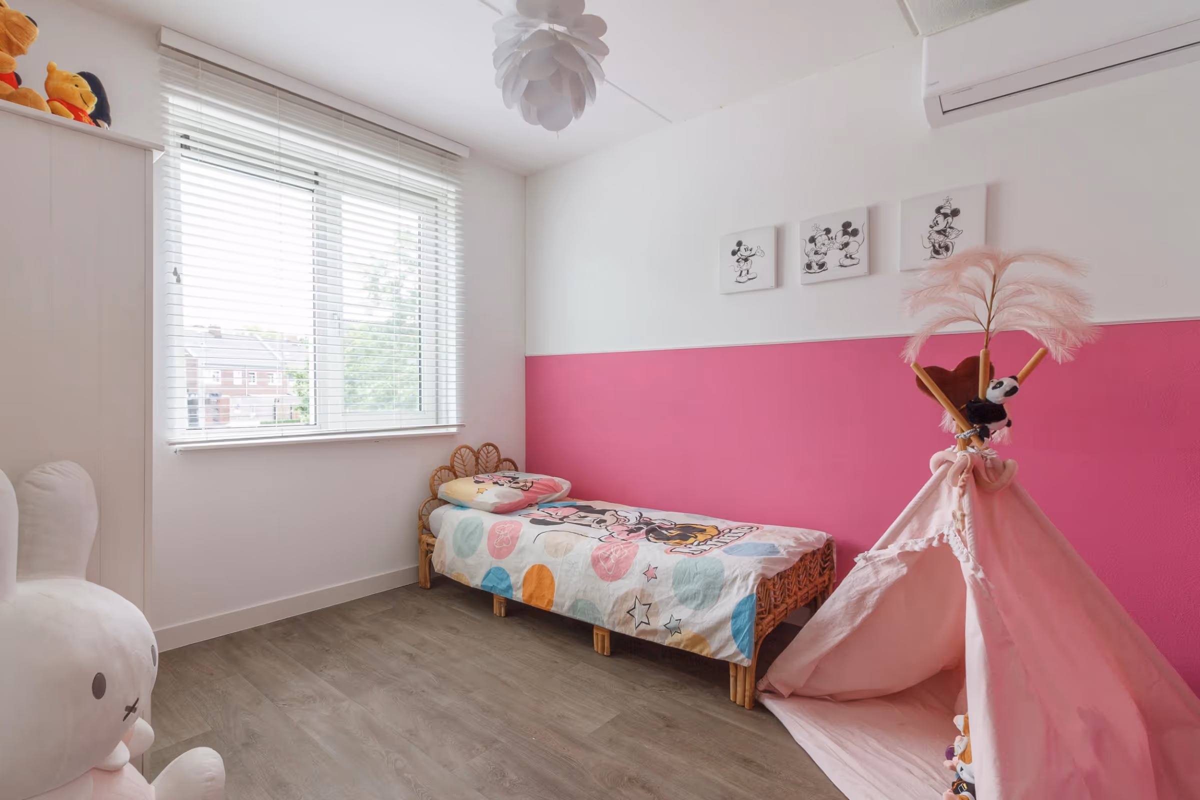 Via de overloop op de 1e verdieping zijn de badkamer en de 3 slaapkamers bereikbaar. Alle 3 deze slaapkamers hebben een keurig niveau van afwerking. Op 1 van de 3 slaapkamers hangt een airco die kan koelen en verwarmen en ook deze verdieping beschikt over vloerverwarming. De moderne badkamer beschikt over een ligbad, aparte douche, 2e toilet en fraai wastafelmeubel.