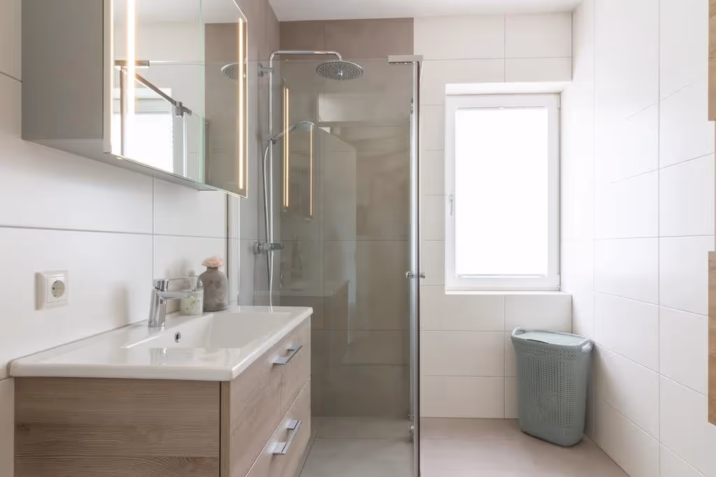 Via de overloop op de 1e verdieping zijn 3 slaapkamers en de mooie badkamer te bereiken. De moderne badkamer bevat een inloopdouche, een groot wastafelmeubel en een 2e toilet. Alle 3 de slaapkamers hebben hetzelfde uitstekende niveau van afwerking als de rest van de woning en beschikken over nette laminaatvloeren en kozijnen met HR++ beglazing en rolluiken.