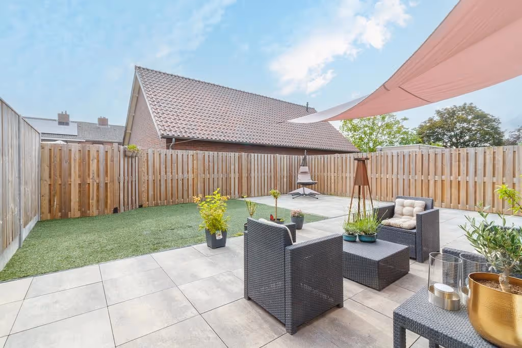 Deze luxe 2-onder-1-kap woning heeft ook nog eens een hele fijn achtertuin, welke keurig is aangelegd en waar je bijna geen onderhoud aan hebt. De tuin is gelegen op het Oosten, voorzien van een royaal terras en een kunstgras gazon. Deze mooie tuin is een plek om heerlijk te genieten van lange (zomer)avonden met vrienden en familie.