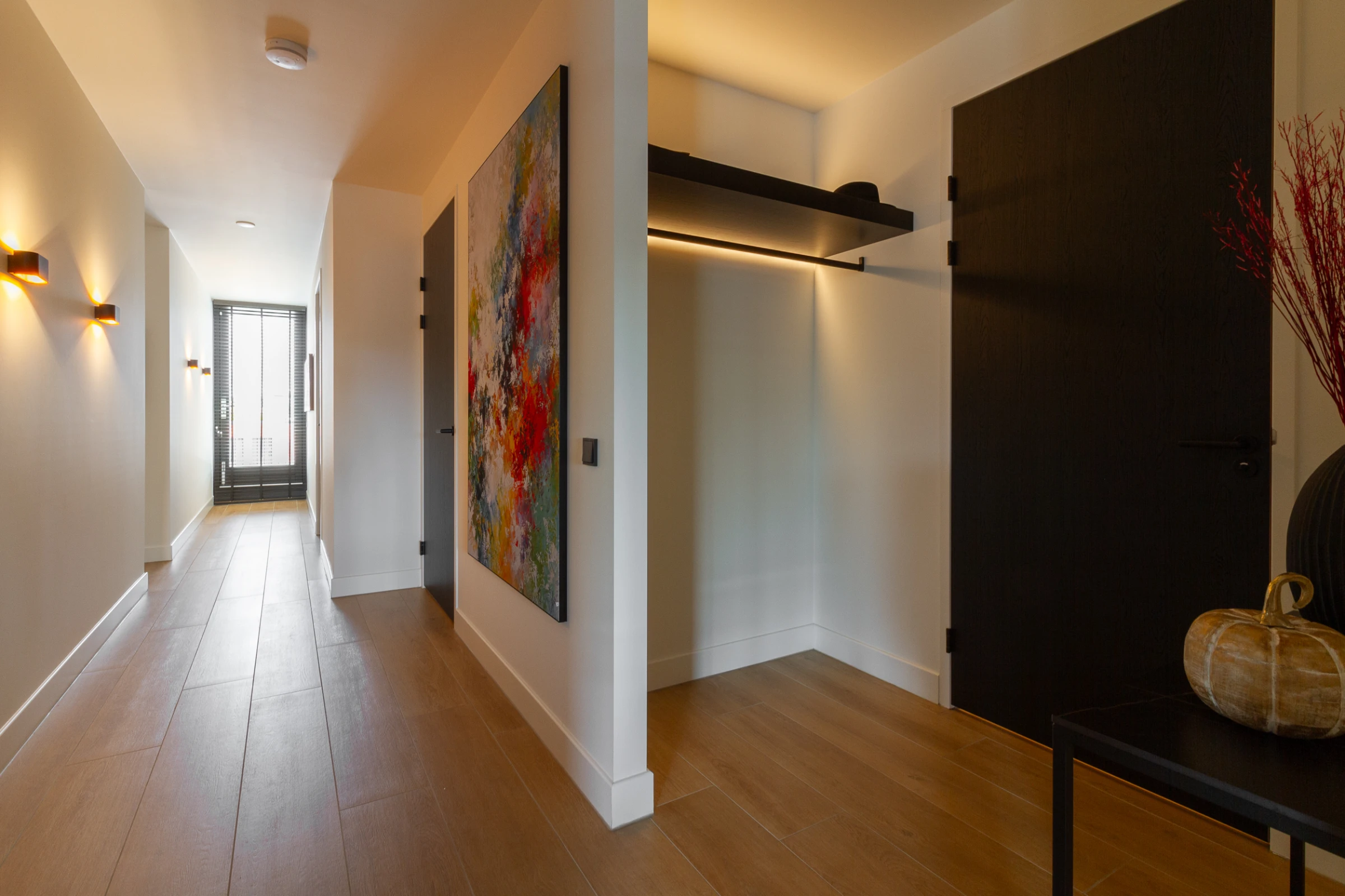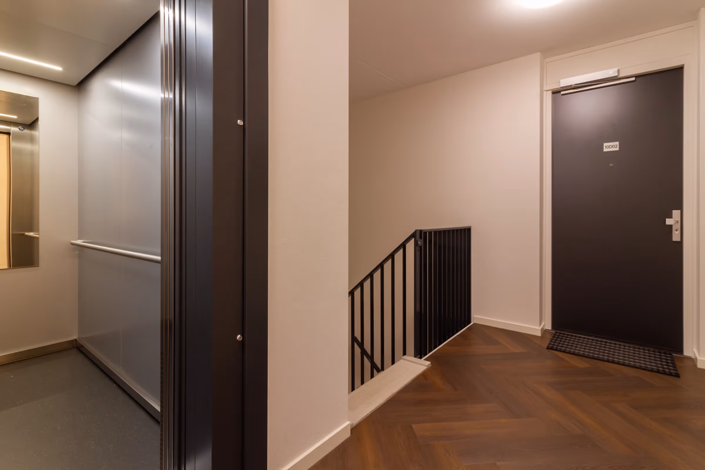 Met de lift bereikt u de 3e en bovenste etage van het complex. Hier zijn de entree van het appartement en de meterkast. Via de entree van het penthouse zijn de diverse vertrekken te bereiken.