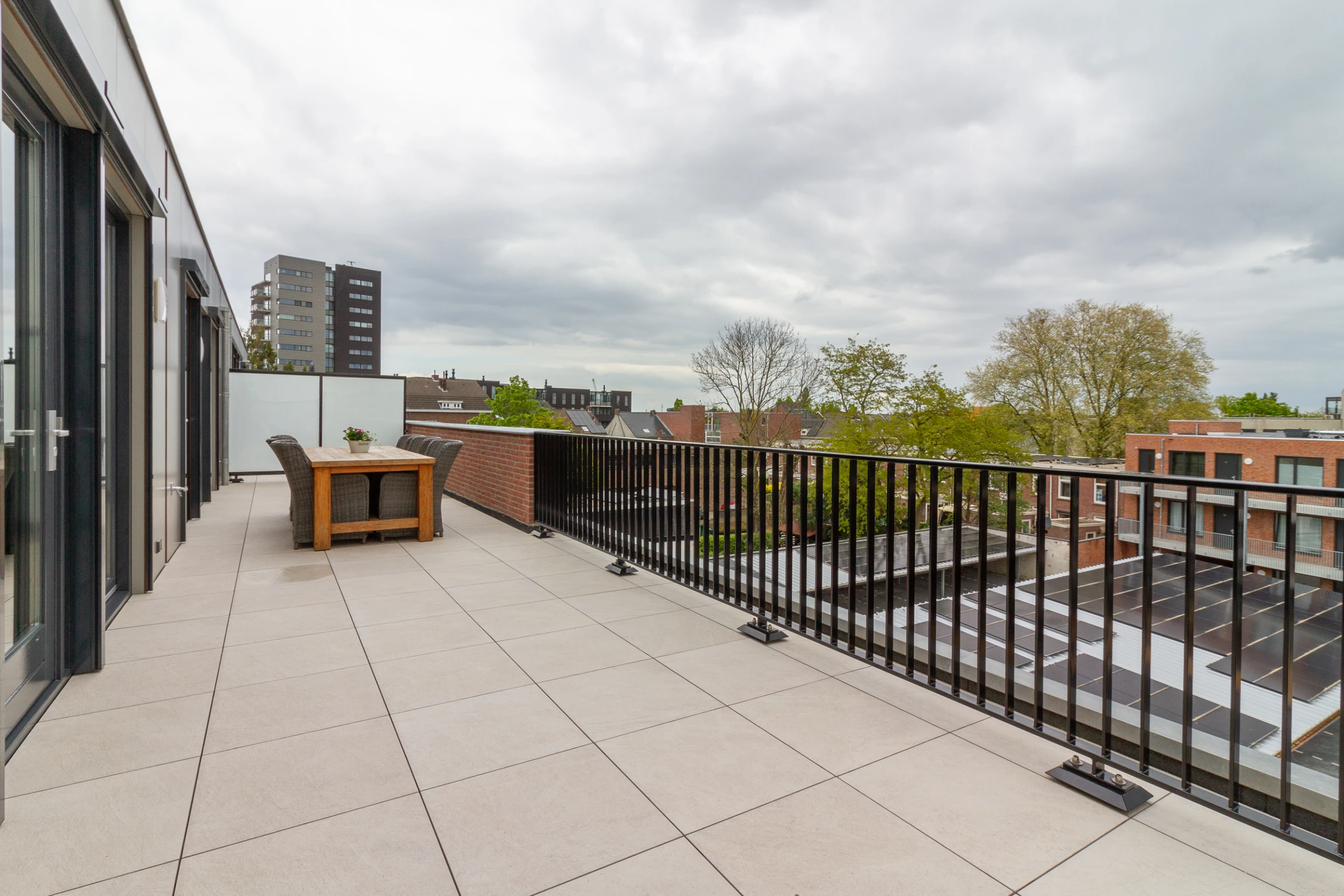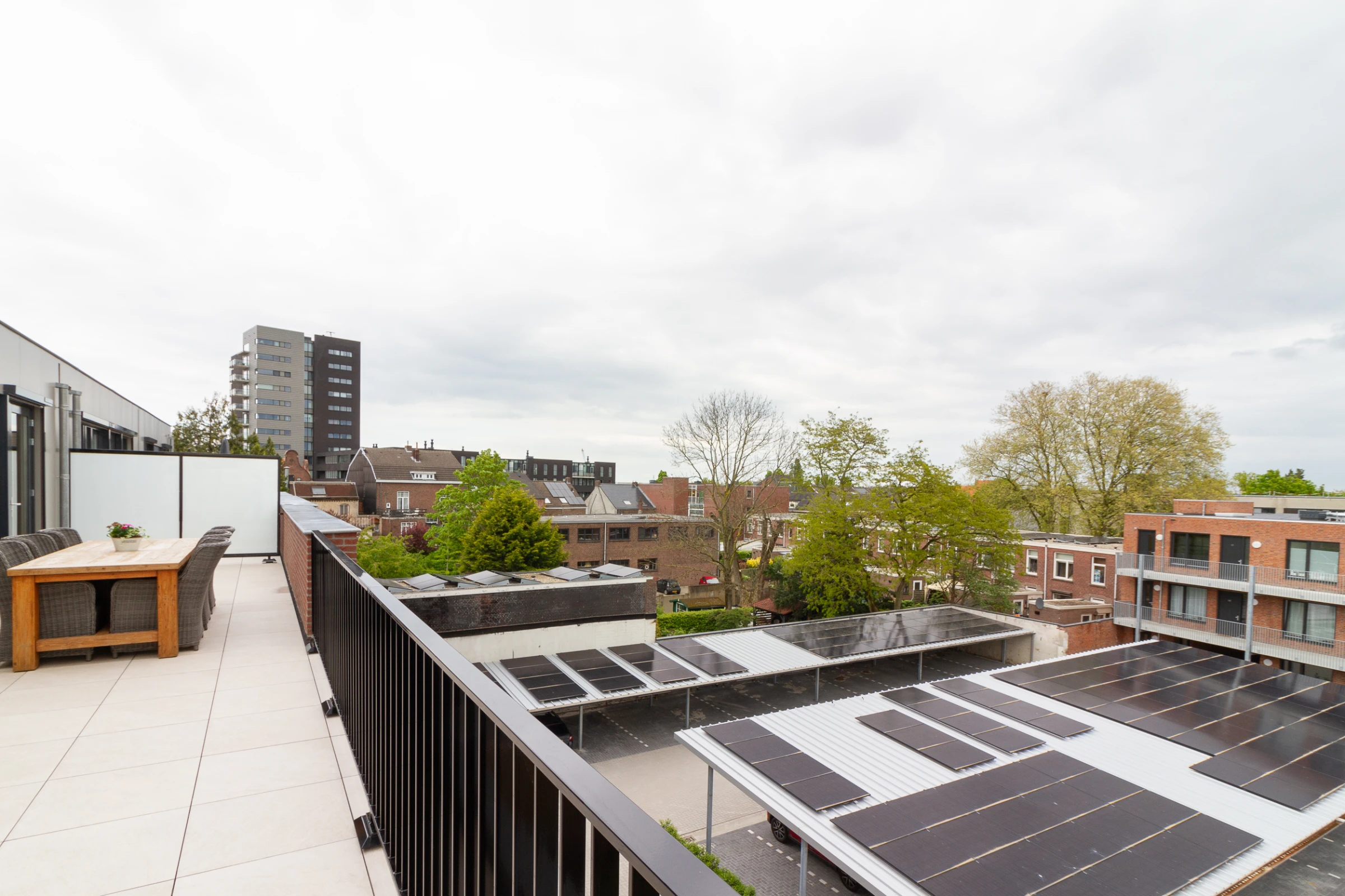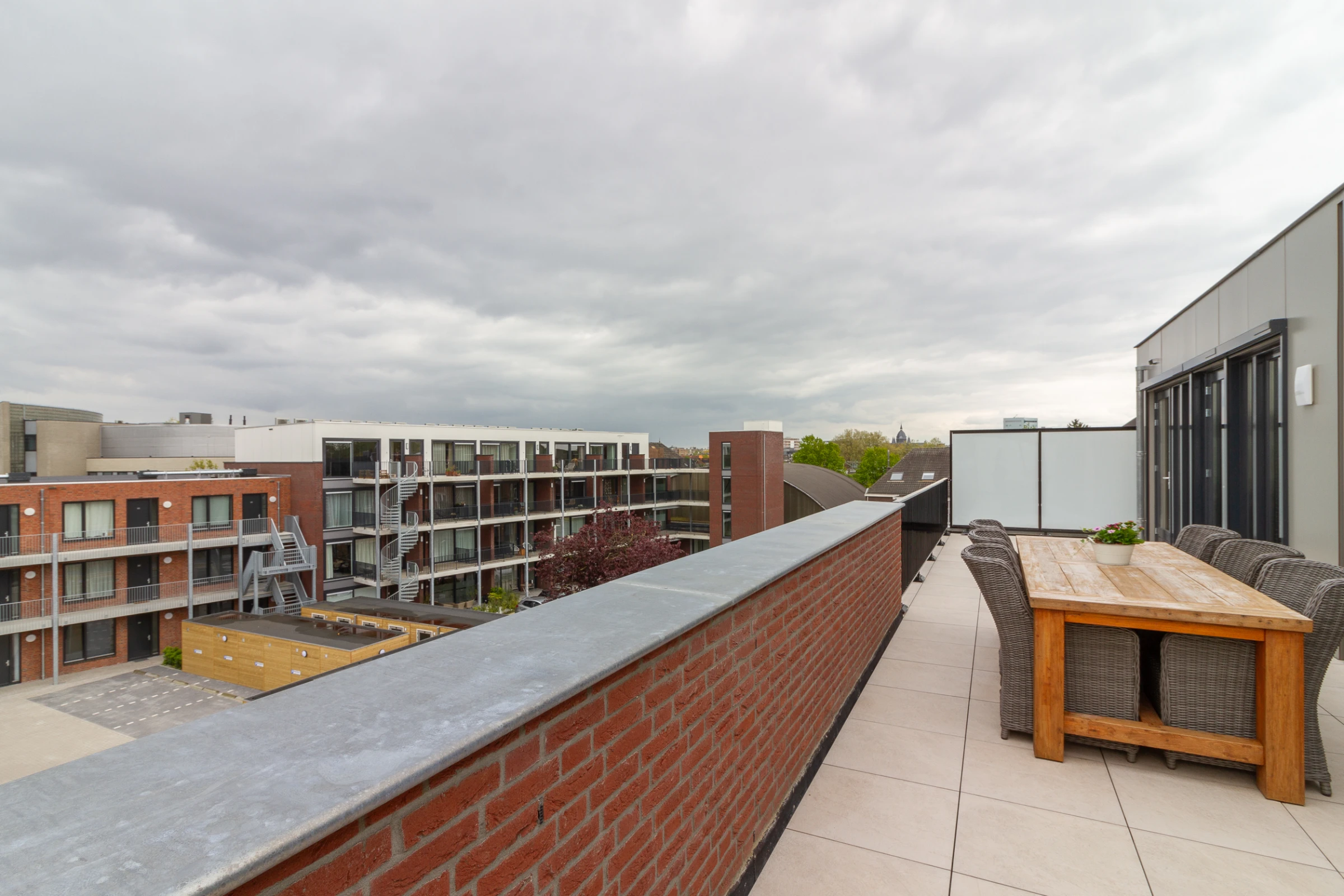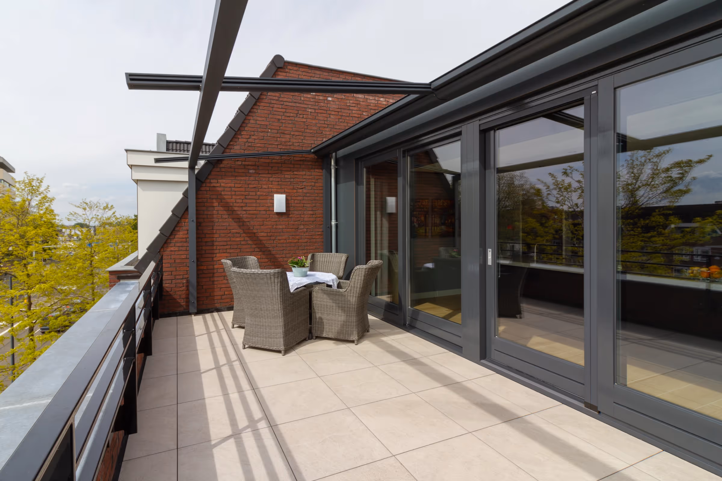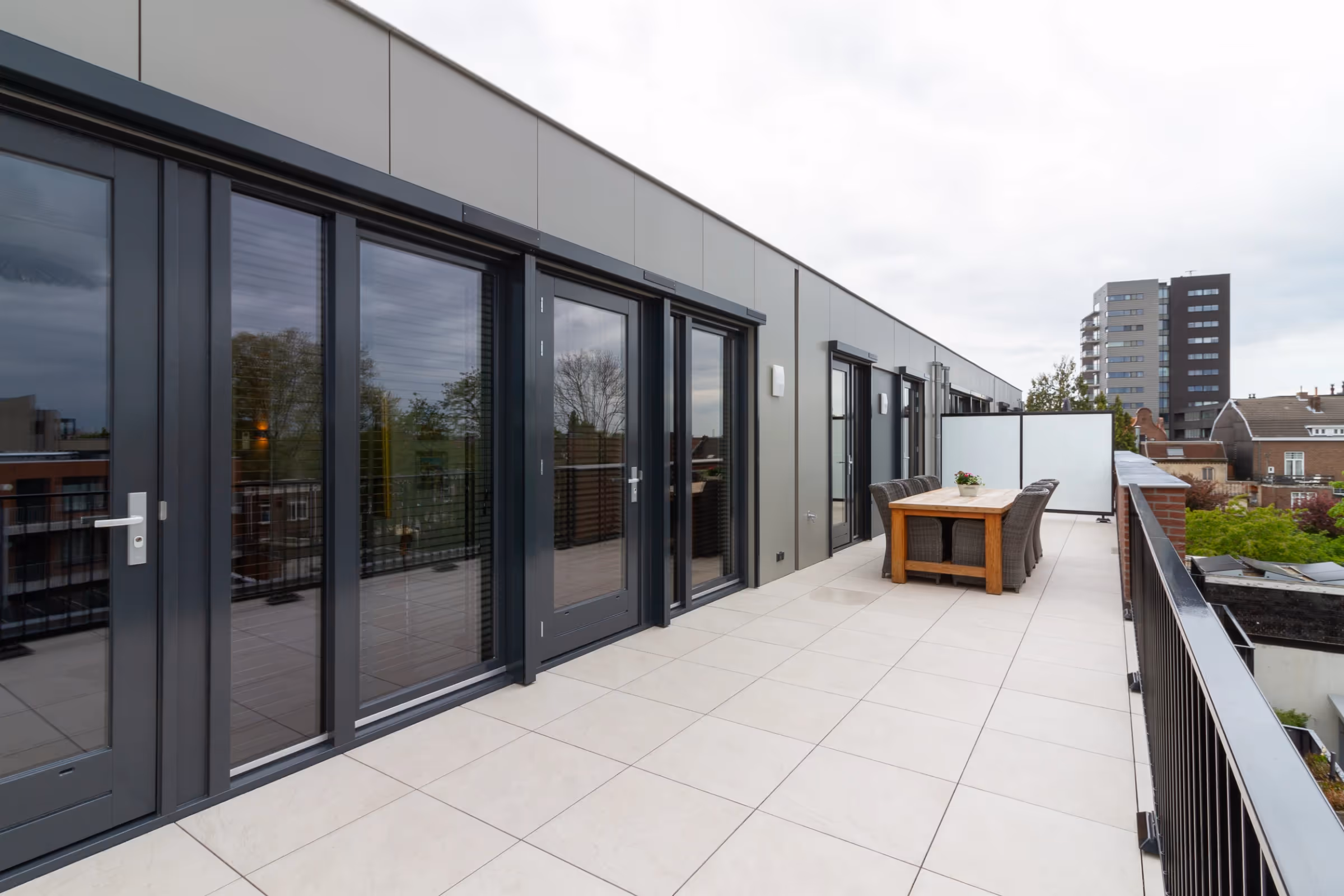 Deze stijlvolle woning heeft maar liefst 2 riante dakterrassen. Aan de voorzijde kijkt u naar diverse landmarks die Roermond rijk is, het Designer Outlet en geniet u van het uitzicht op de toekomstige groene stadsruimte. Dit dakterras heeft een afmeting van 21 m² en hier geniet u van de avondzon. Het terras aan de achterzijde strekt zich uit over de gehele breedte en meet maar liefst 40 m². Aan de achterzijde is het heerlijk rustig en heeft u eveneens een mooi vergezicht over Roermond. Dit terras biedt plaats aan een grote eettafel, een ruime zithoek, of zelfs een jacuzzi of buitenkeuken, mocht u voor nog meer luxe willen gaan!