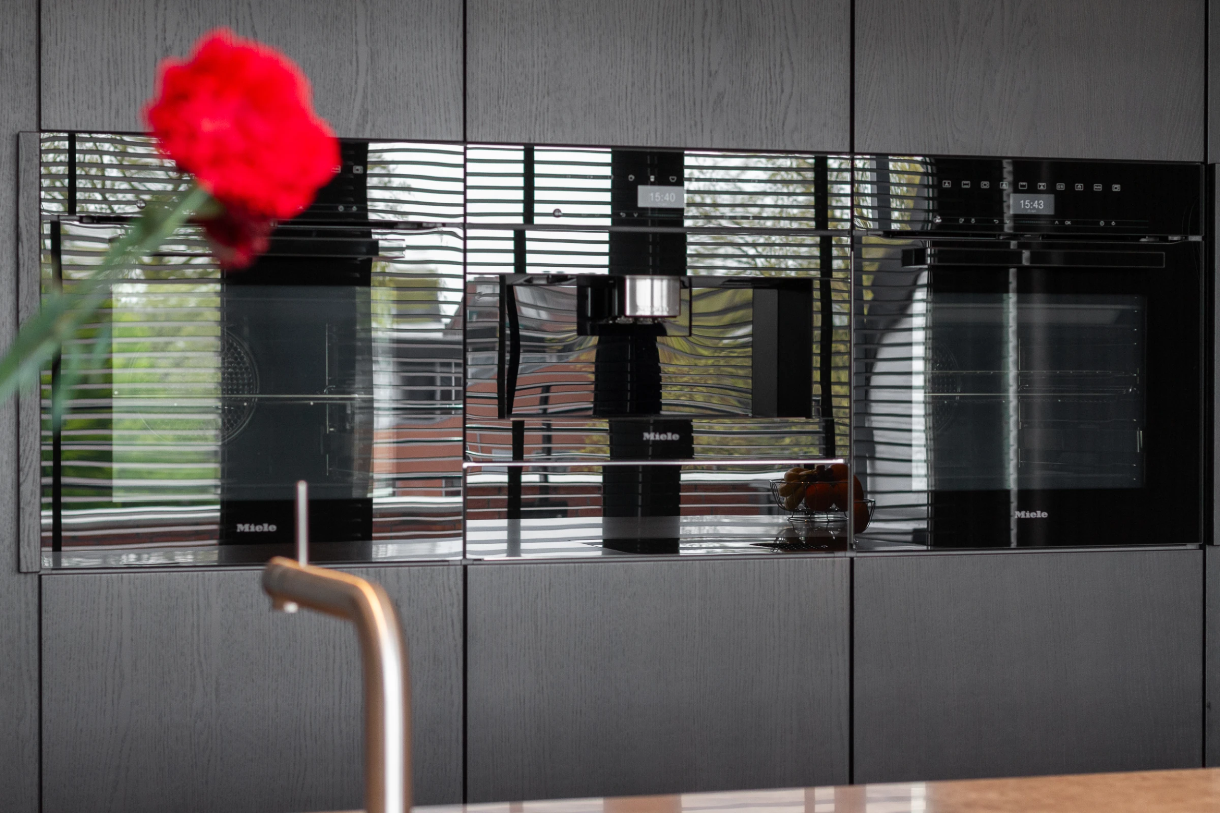 Als u van koken, borrelen en lang tafelen houdt, is de riante leefkeuken van het appartement een waar genot. De keuken is, net als het gehele appartement, voorzien van hoogwaardige materialen en de kwalitatief uitstekende inbouwapparatuur. Het riante eiland beschikt over een prachtig blad, met Bora inductie kookplaat en afzuiging. Verder is alle gangbare (Miele) inbouwapparatuur aanwezig, waaronder een royale koelkast, vriezer, 2 hete lucht ovens, warmhoud lade, vaatwasser, koffie machine en handige Quooker. Tenslotte is vanuit de keuken de bijkeuken toegankelijk, met veel extra bergruimte.