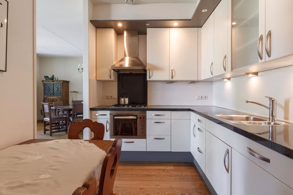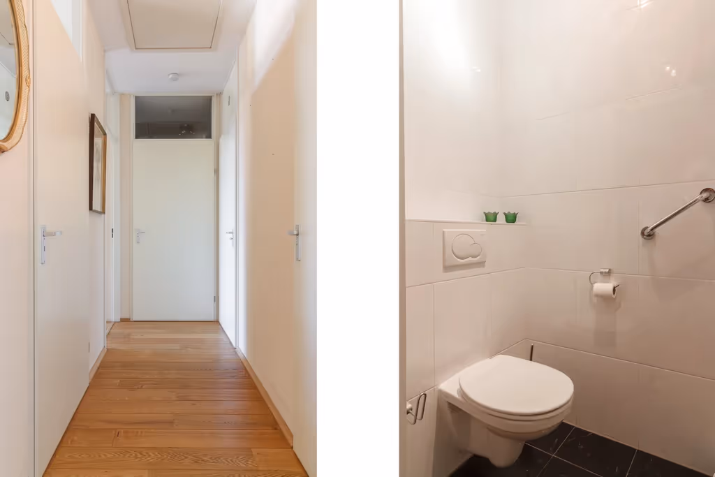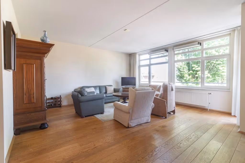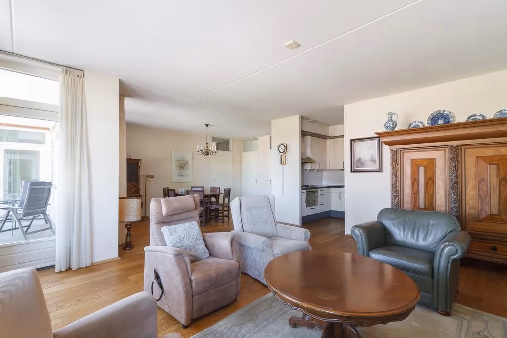 Het appartement is gelegen op de 1e verdieping. Entree in de hal, met meterkast en toegang tot de woonkamer. Deze woonkamer is heerlijk licht en voorzien van een stijlvolle, massieve houten parketvloer. De keuken is separaat van de woonkamer en heeft een hoekopstelling met alle comfort die u mag verwachten; een 4 pits gasfornuis, afzuigkap, koelkast, combi-magnetron, vriezer en vaatwasser. Aan de keuken grenst vervolgens de bijkeuken, waar de aansluitpunten voor het witgoed zijn gelegen. Vanuit de woonkamer zijn ook nog het ruime balkon en de diverse andere vertrekken te bereiken. Via een 2e hal zijn achtereenvolgens het toilet, een berging met CV combiketel (Intergas, huur, 2019), de badkamer en 2 slaapkamers toegankelijk. De badkamer is royaal en voorzien van een inloopdouche en wastafel. De beide slaapkamers zijn eveneens ruim van opzet en hebben hetzelfde keurige niveau van afwerking, als de rest van het appartement. De hoofdslaapkamer biedt tevens toegang tot het balkon. Deze fijne buitenruimte meet een ruime 13 m² en biedt plaats aan een prima zithoek of eettafel voor meerdere personen.