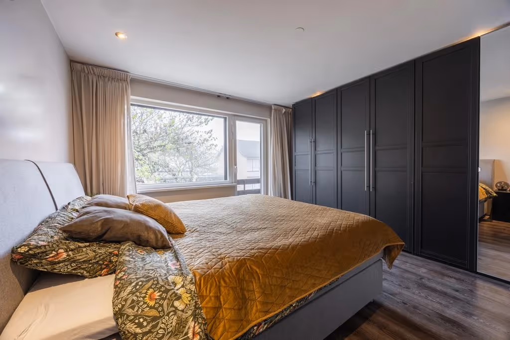 Via de overloop op de 1e verdieping zijn 3 fijne slaapkamers en de badkamer bereikbaar. Alle 3 de slaapkamers hebben een keurig niveau van afwerking, met o.a. laminaatvloeren. Verder zijn de kozijnen uitgevoerd in kunststof met HR++ beglazing, en zijn deze ook nog eens voorzien van rolluiken. De nette badkamer is van alle gemakken voorzien, met een ligbad met bubbelbad, douchecabine, een fraai wastafelmeubel en een 2e toilet. Tenslotte ligt op deze verdieping nog een wasruimte, met de aansluitingen voor het witgoed.