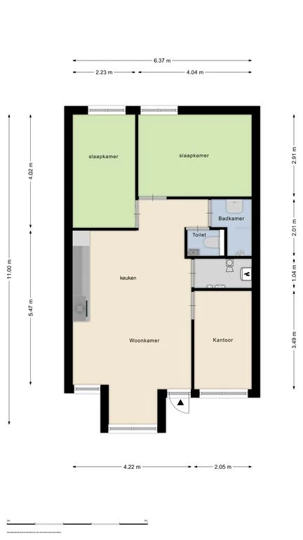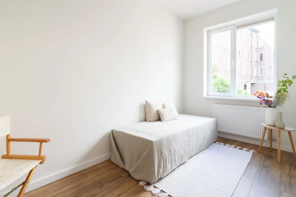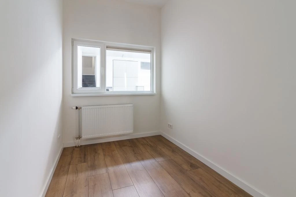 Dit appartement ligt op de eerste verdieping en aan de achterzijde. Alvorens je in het appartement komt, loop je vanuit het atrium (de centrale binnenplaats) enkele traptreden op, om bij de voordeur te komen. Je komt gelijk binnen in de woonkamer met open keuken en speelse erker. Deze erker zorgt voor een mooie lichtinval en leuk zicht op de centrale binnenplaats. Door het hele appartement ligt een fraaie vloer en de keuken beschikt over een blok met de volgende inbouwapparatuur: een kookplaat met afzuigkap, een magnetron, een koelkast en handige vaatwasser. Verder heeft dit appartement 3 slaapkamers, of een thuiswerkplek en 2 slaapkamers, al naar gelang hetgeen jij fijn vindt. Vervolgens heeft het appartement ook nog een berging, met aansluitpunten voor de CV combiketel en de wasmachine, een apart en betegeld toilet en een badkamer met douche en wastafel.