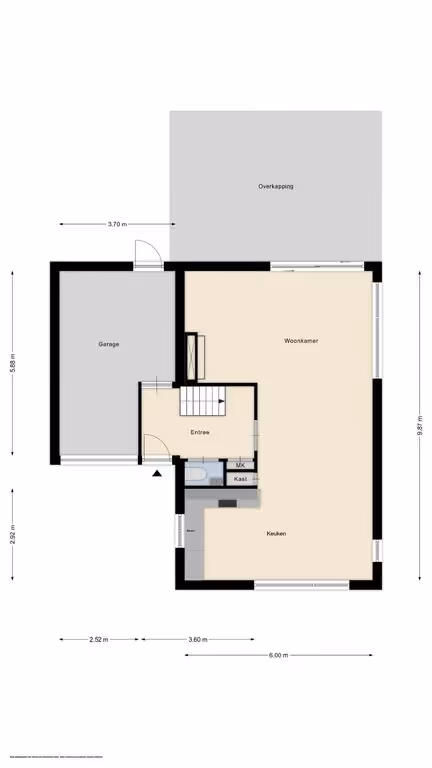 Via de entreehal, waar tevens het gastentoilet met fonteintje en de meterkast zijn gelegen, kom je zowel in de inpandige garage, als in de woonkamer. Deze fijne woonkamer heeft lekker veel tuincontact, door de grote kozijnen en de schuifpui naar de tuin. Aan de voorzijde is de keuken gelegen. Deze heeft een hoekopstelling met veel werk- en kastruimte en is van alle gemakken voorzien. Zo beschikt de keuken over de volgende inbouwapparatuur: een inductiekookplaat, afzuigkap, koelkast, magnetron en vaatwasser. Verder beschikt de keuken nog over een flinke opbergkast, met behoorlijk wat extra bergruimte. Tenslotte is op de begane grond nog de inpandige garage gelegen. Deze garage beschikt over warm- en koud water en over verwarming.