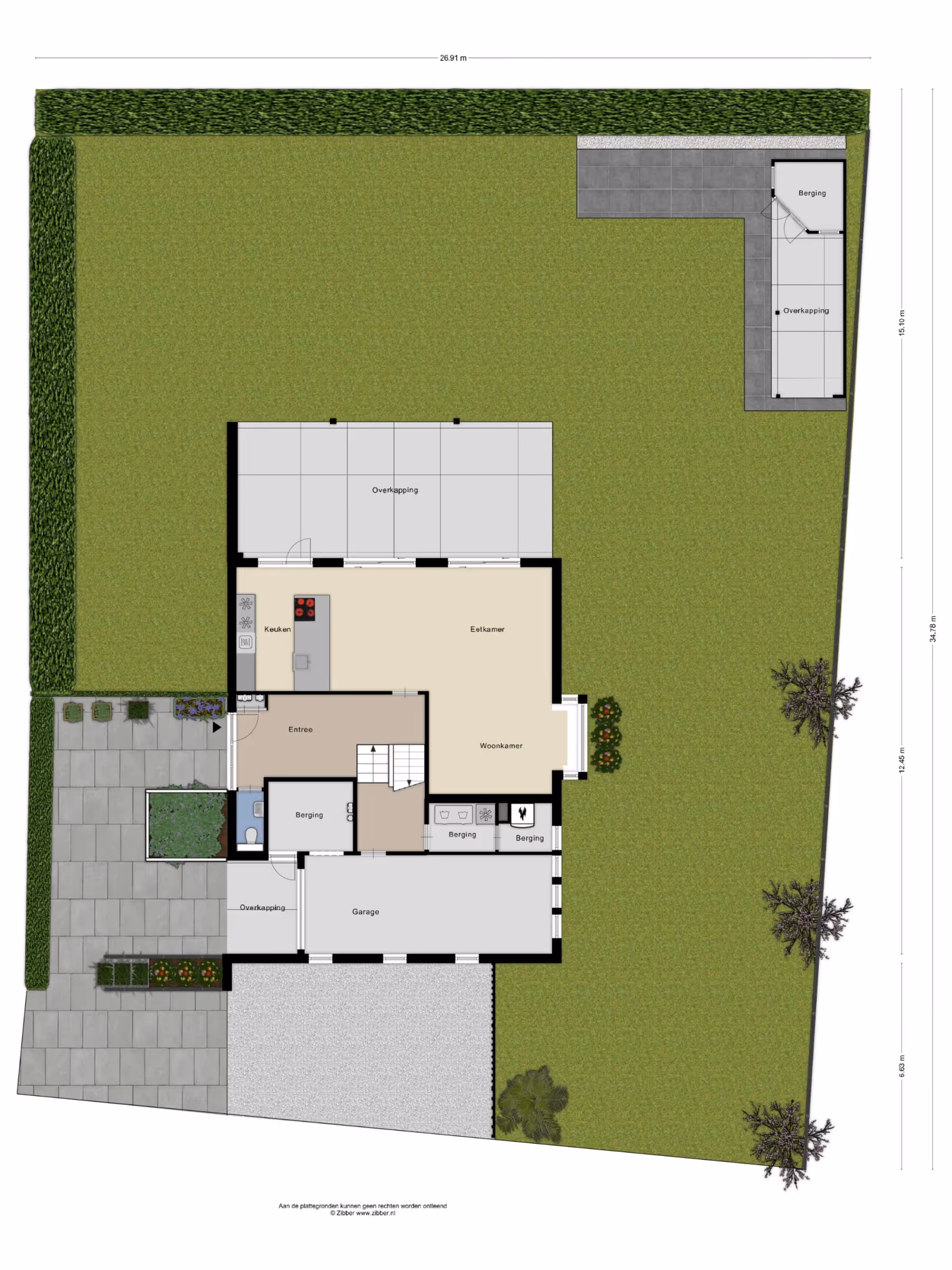 De tuin is een oase van privacy, met een terras met terrasoverkapping van 45 m², een zeer riant gazon en een 2e terras met terrasoverkapping, met houten tuinberging. De tuin is geheel omheind en door de hoekligging heb je altijd zon in de tuin, waardoor het hier heerlijk vertoeven is op warme zomeravonden. Tenslotte beschikt het huis over een oprit, welke geschikt is voor meerdere voertuigen.