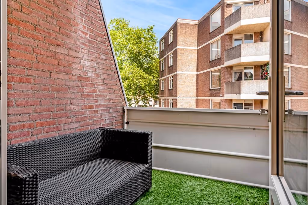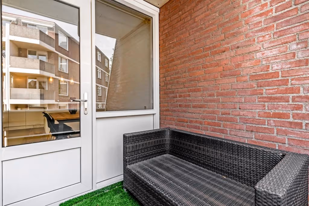 Vanuit de woonkamer is het balkon te bereiken. Deze fijne buitenruimte is voldoende ruim en je kunt hier heerlijk vertoeven.