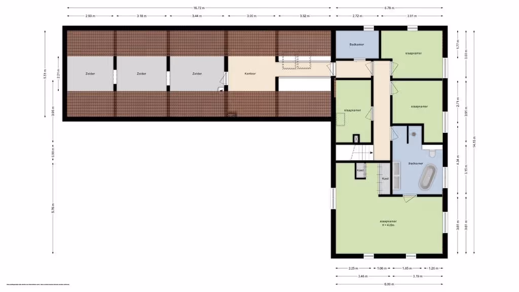 Zoals aangegeven bevat deze charmante woning een inpandig te bereiken schoonheidssalon / praktijkruimte. Deze ruimte heeft een eigen voordeur / toegang, gastentoilet én is via de keuken verbonden met het huis. De schoonheidssalon heeft, net als de woning, een uitstekend niveau van afwerking, met een tegelvloer met vloerverwarming en een airco (2020) die kan koelen en verwarmen. Behalve als schoonheidssalon / praktijkruimte, kan deze ruimte ook perfect fungeren als kantoor aan huis of thuiswerkplek. De oppervlakte van de totale salon bedraagt 42 m².