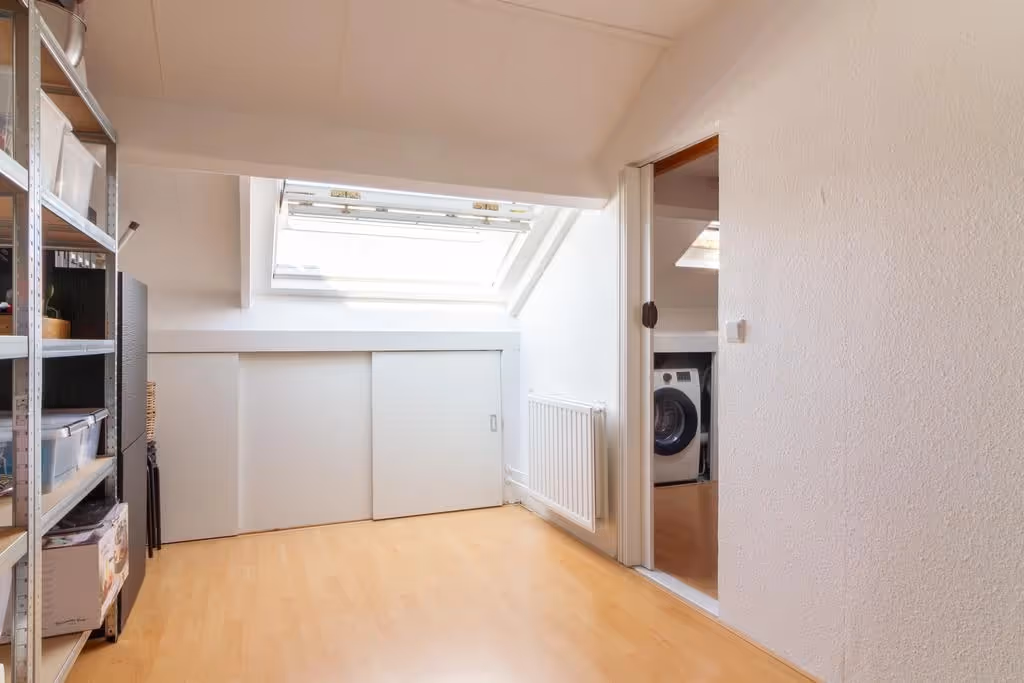 Via een vaste trap is de 2e verdieping te bereiken. Hier bevindt zich een ruime extra kamer, welke prima dienst kan doen als thuiswerkplek of 4e slaapkamer. Verder zijn op de overloop van deze zolderverdieping de aansluitpunten voor het witgoed en de CV combiketel (Intergas, huur, 2012) en de aansluitpunten voor de wasmachine gelegen.