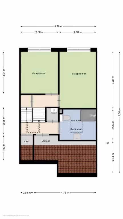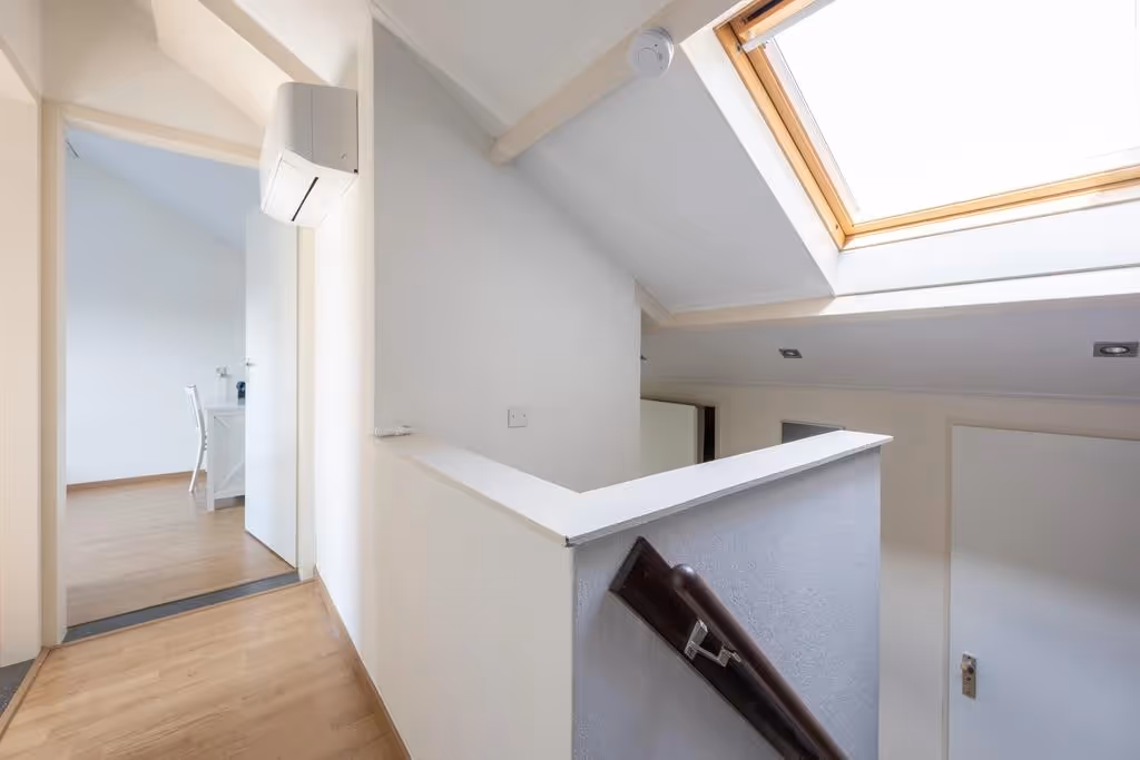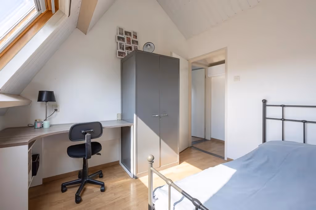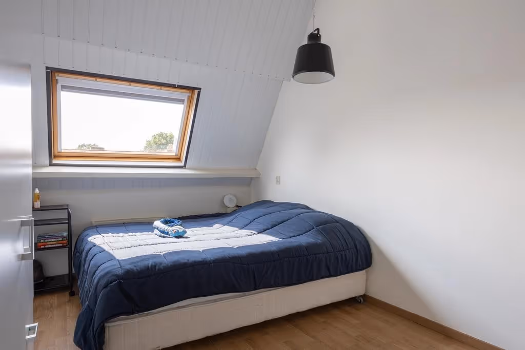 Op de 3e en bovenste verdieping van deze woning liggen nog eens 2 ruime slaapkamers. Ook deze kamers hebben een nette afwerking, met laminaatvloeren en een mooie lichtinval door de grote dakramen. Tenslotte hangt ook op deze verdieping een airco.