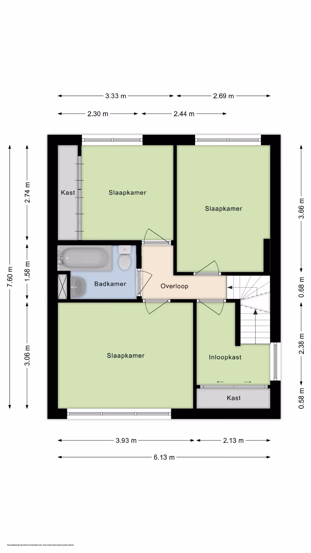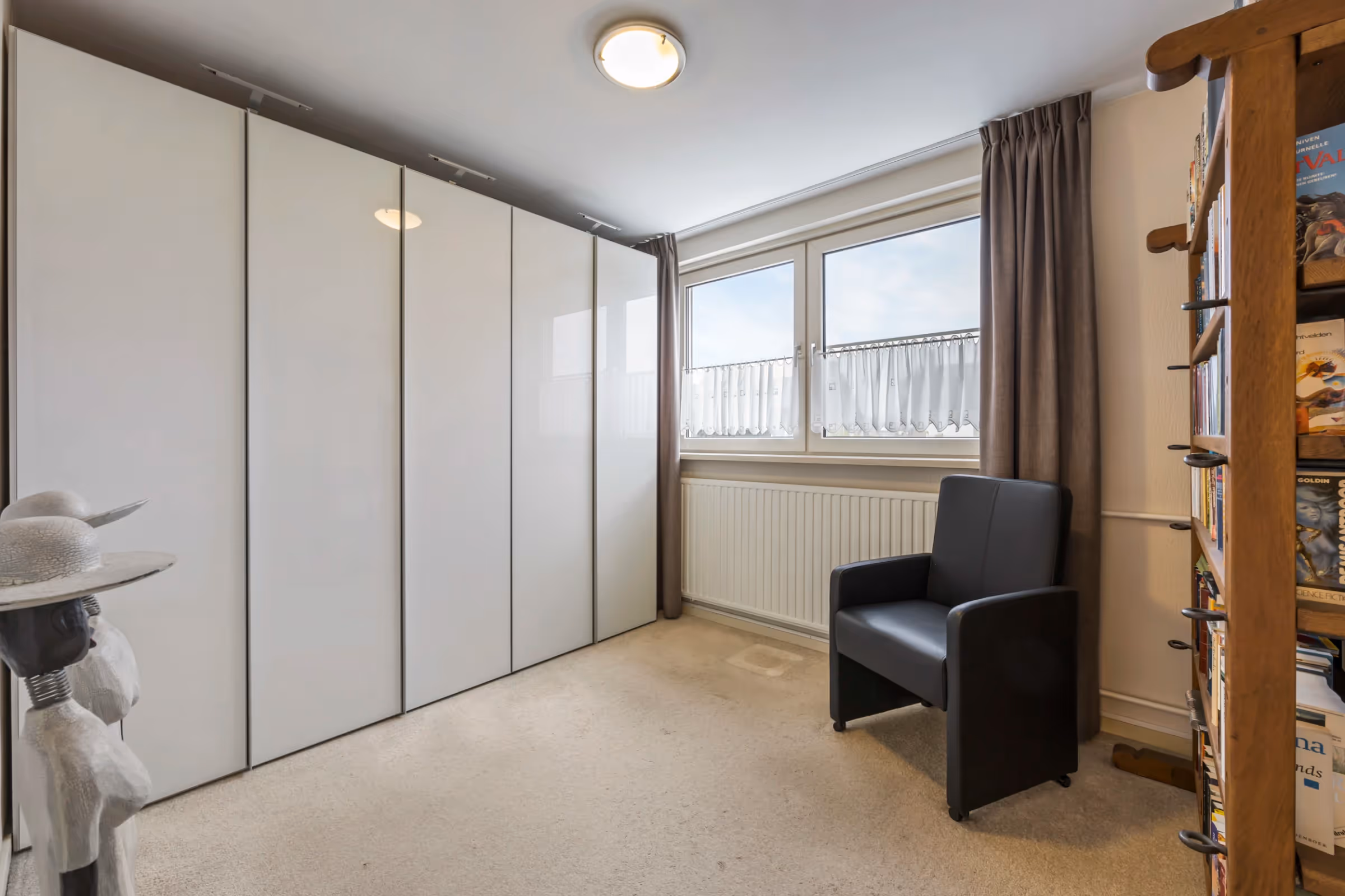 Via de overloop op de 1e verdieping zijn de 3 nette slaapkamers en de badkamer te bereiken. De badkamer bevat een 2e toilet, een wastafel, een ligbad met douchecombinatie en een designradiator. De 3 slaapkamers hebben een keurig niveau van afwerking en ook hier zijn kunststof kozijnen met HR+ beglazing en rolluiken aanwezig. Tenslotte ligt op deze verdieping nog een 4e kamer, waar zich inbouwkasten bevinden en de vaste trap naar de zolderverdieping.
