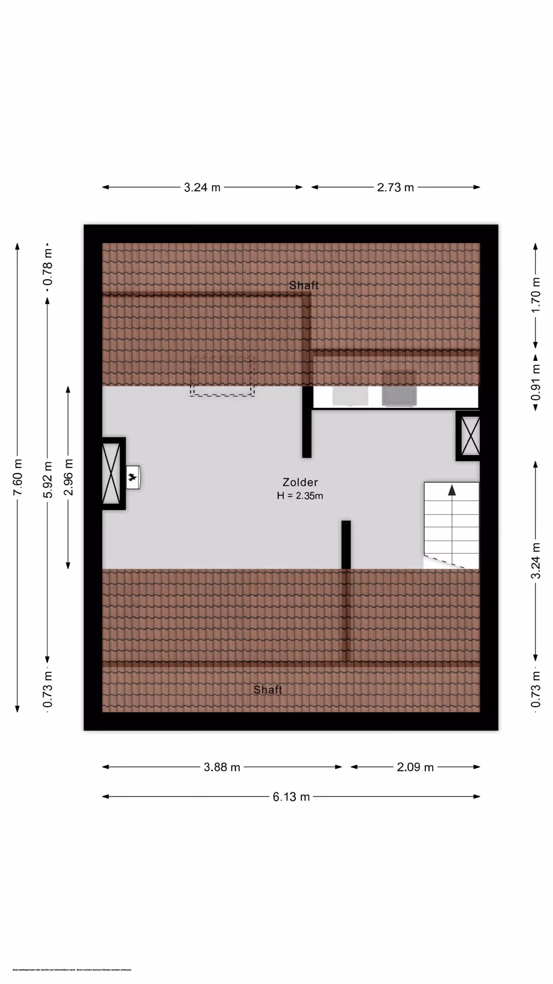 Via de vaste trap is deze zolderverdieping bereikbaar. Deze verdieping is verdeeld in 2 gedeelten, waarbij het achterste gedeelte prima als extra slaapkamer, hobbyruimte of speelkamer voor de kinderen kan dienen. Tevens is in het voorste gedeelte van de zolderverdieping de opstelplaats van de CV combiketel (Bosch, eigendom, 2010).