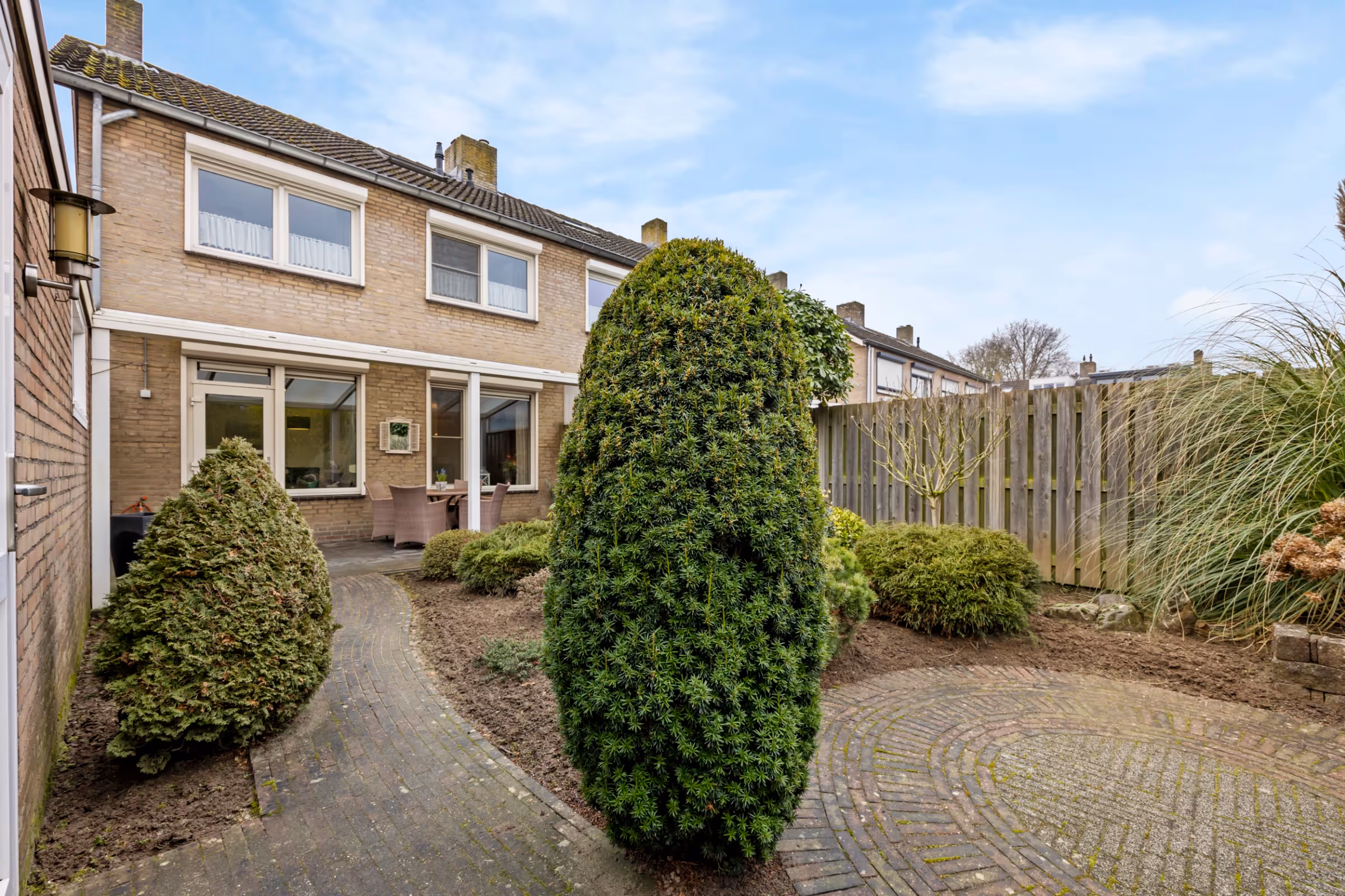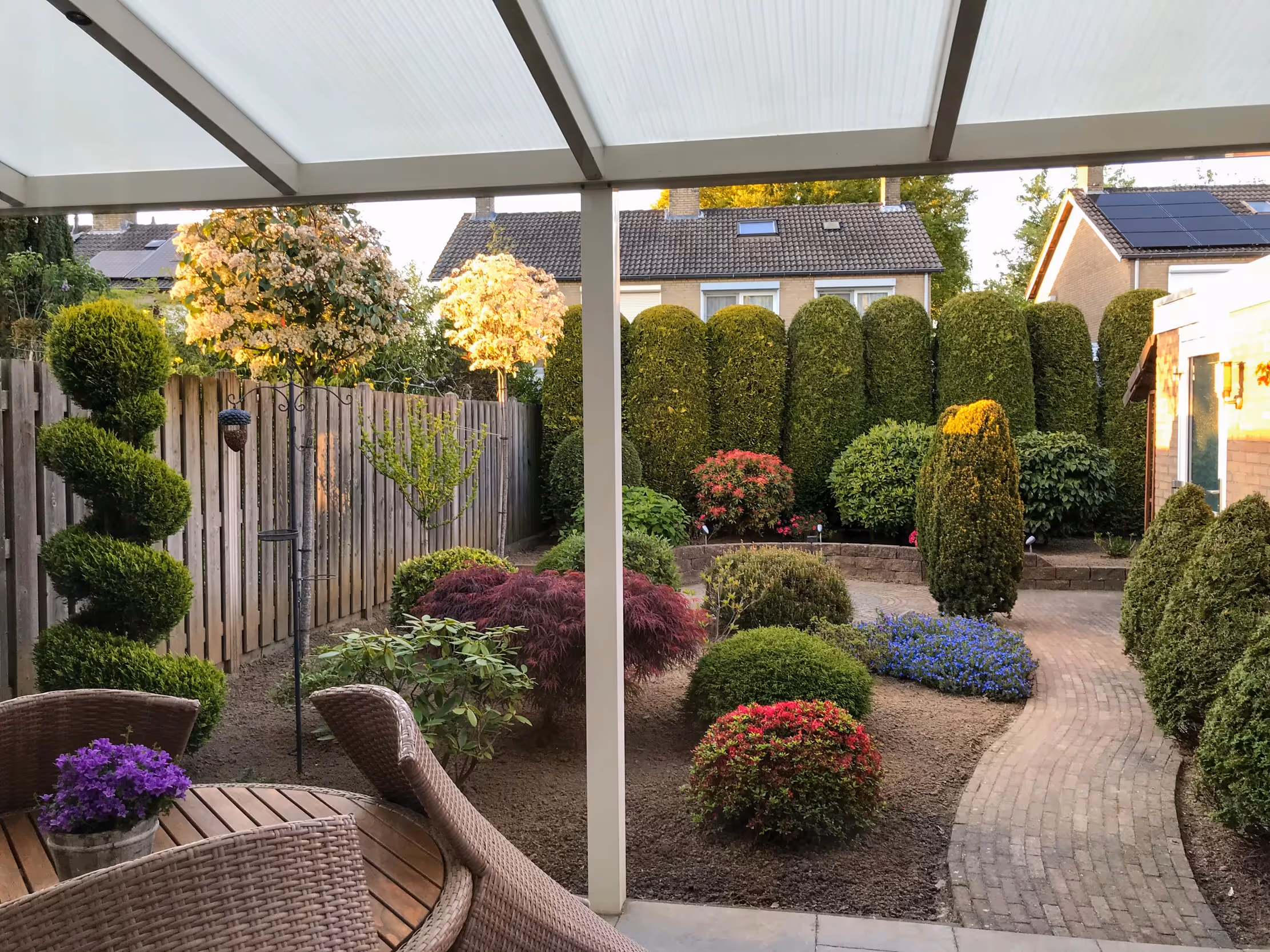 Deze fijne woning heeft ook nog eens een hele mooie achtertuin, welke bestaat uit een mooi terras met luxe terrasoverkapping en een keur aan fraaie beplanting. De tuin is gelegen op het Noorden, maar beschikt evengoed over veel zon. Tenslotte ligt hier nog een vrijstaande garage met elektrische sectionaalpoort en heeft deze woning een flinke oprit, geschikt voor meerdere voertuigen.
