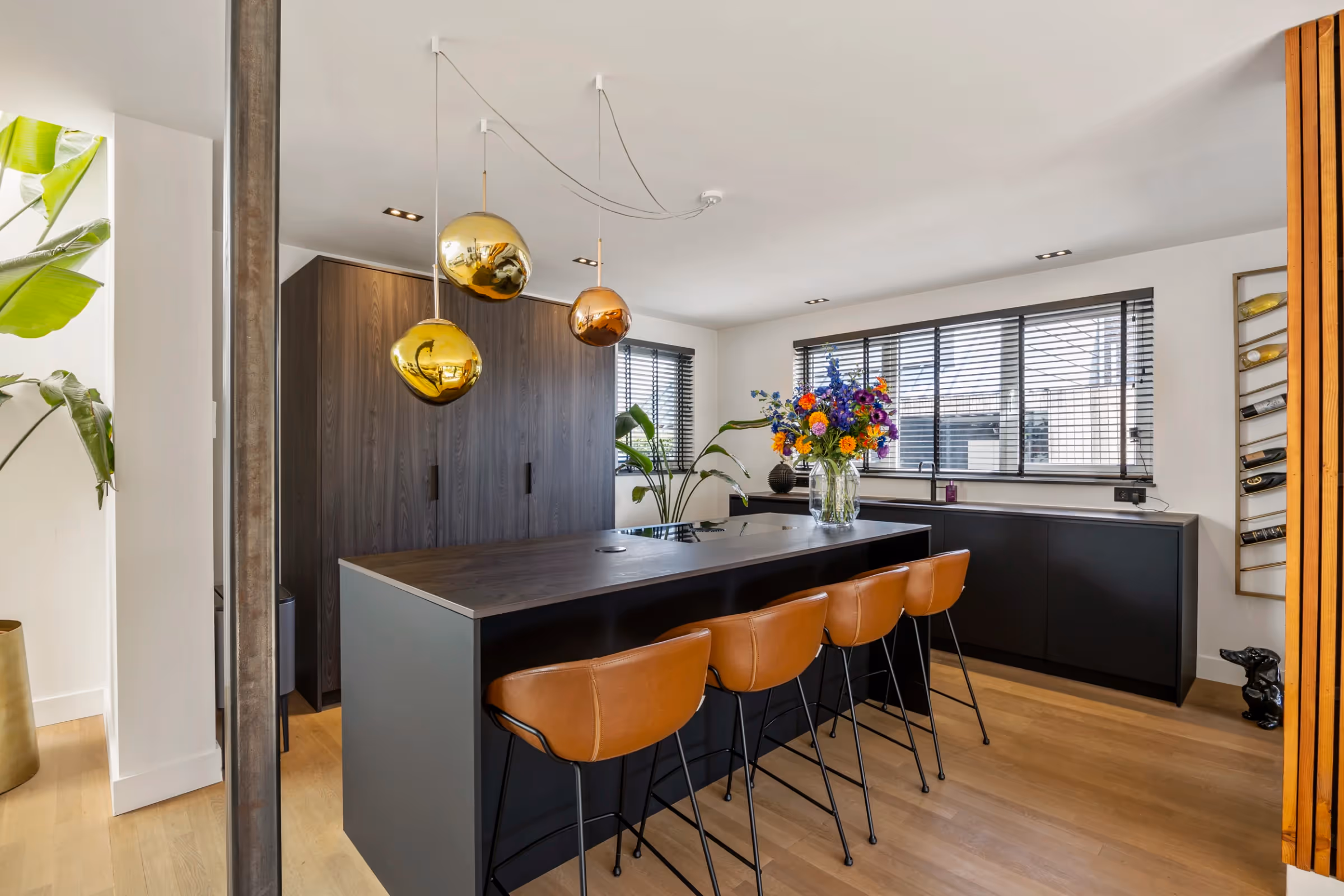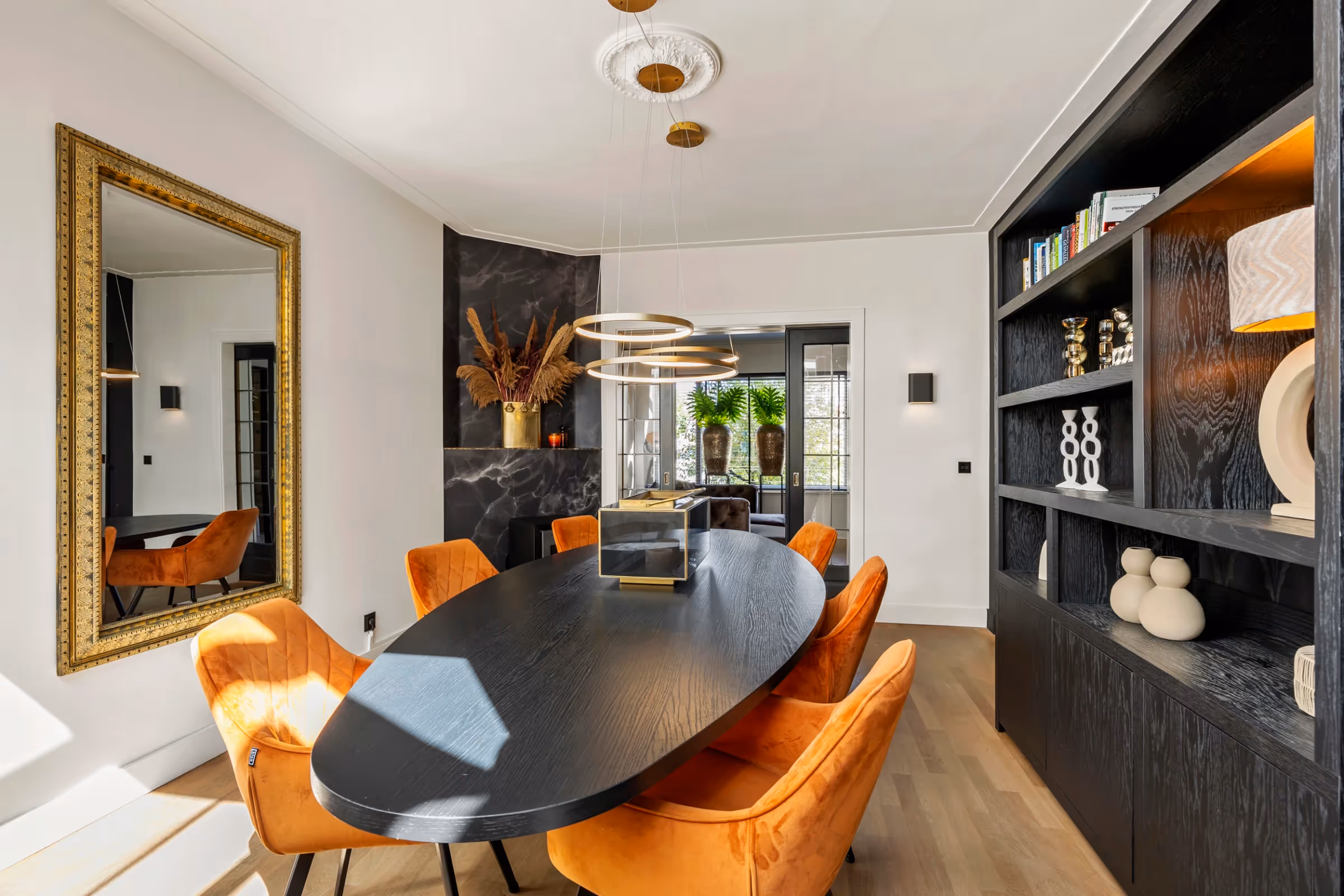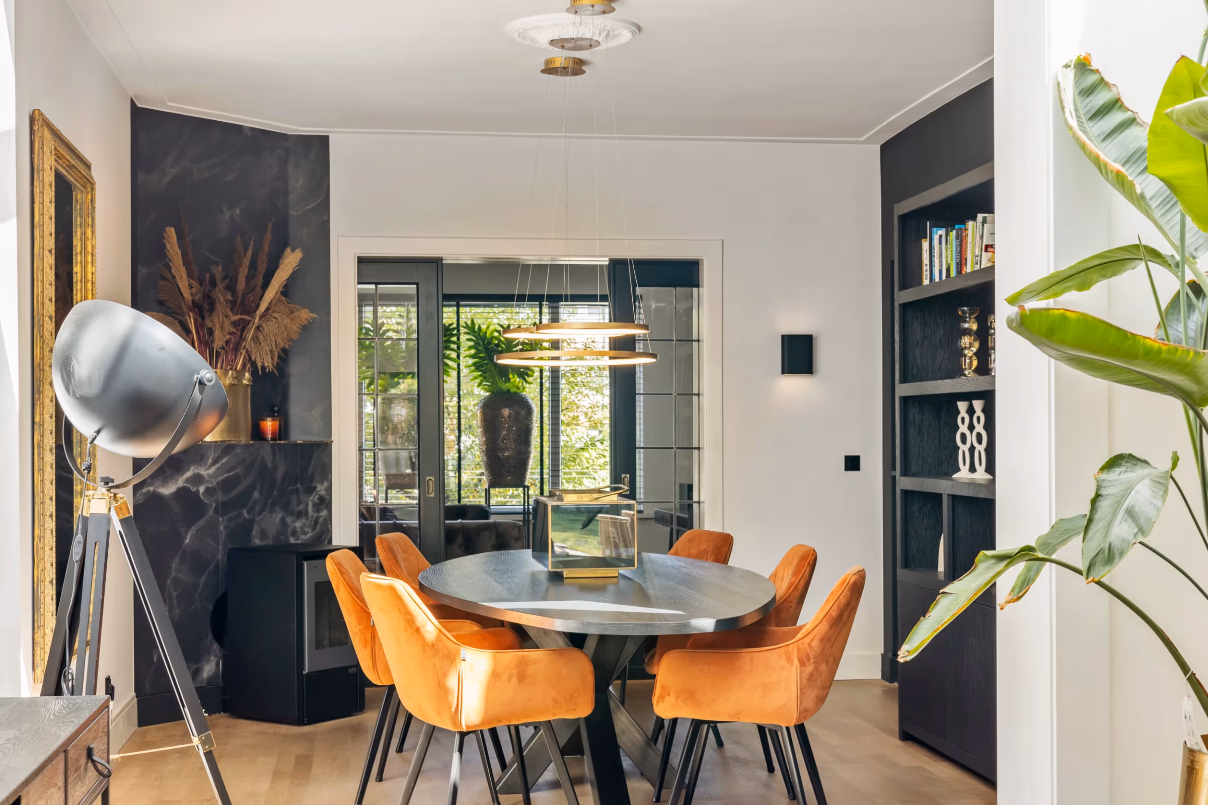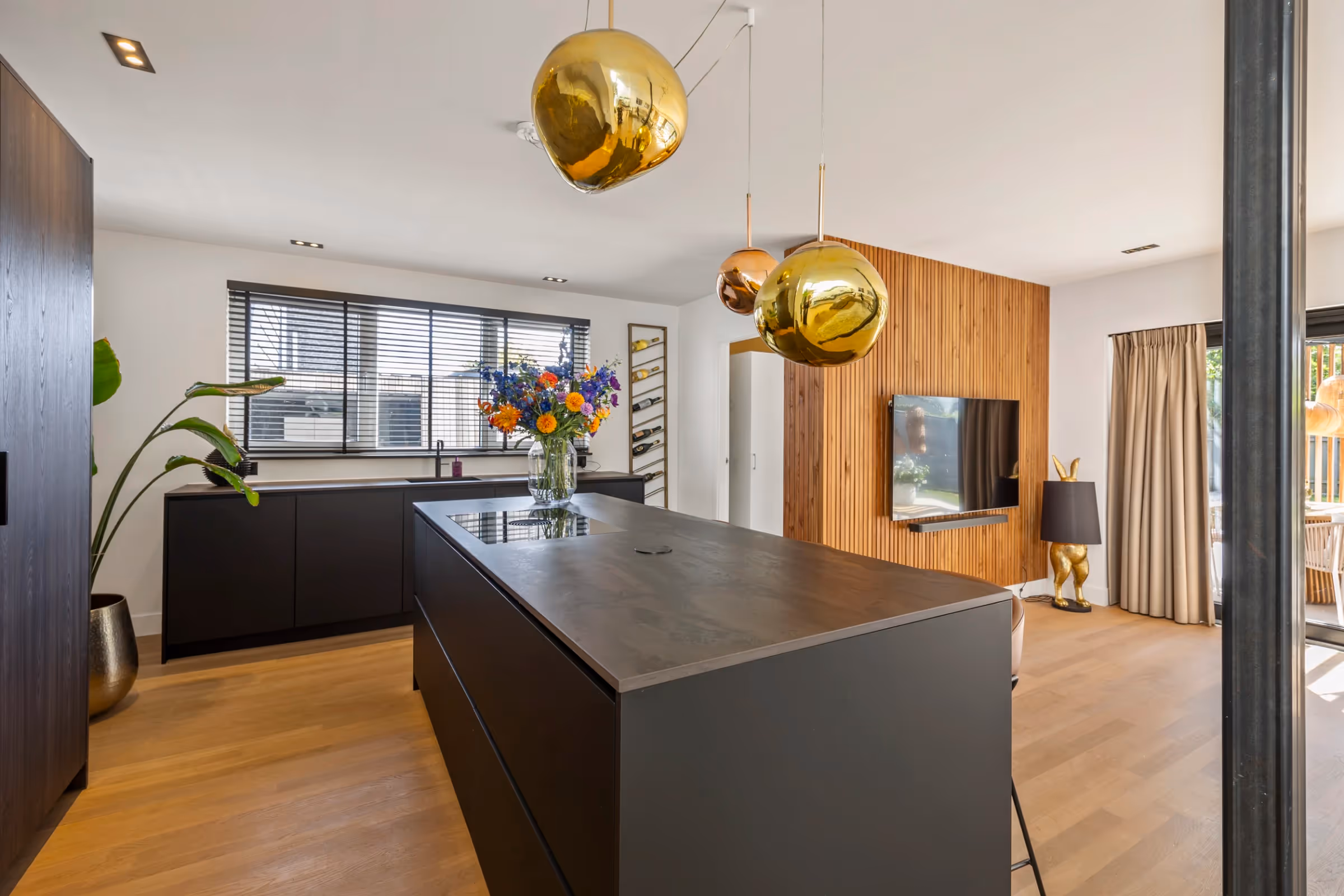 Bij de entree van dit sfeervolle woonhuis komt de charme je al tegemoet. De authentieke vloer combineert prachtig met het houten wandpaneel en de stijlvolle trappartij. Vanuit de hal zijn het souterrain, het gastentoilet en de woonkamer toegankelijk. De woonkamer ademt sfeer en charme, o.a. door de mooie en suite deuren en een prachtige houten vloer. De voorkamer is nu als werk- en zithoek in gebruik en in het middendeel staat de eettafel. Ook staat hier de pelletkachel. Na het voor- en middendeel van de woonkamer, ligt aan de achterzijde van de woning een riante uitbouw met leefkeuken en nog een zithoek. Deze nieuwe keuken beschikt over een luxe kookeiland met veel werk- en kastruimte. Verder heeft deze leefkeuken de volgende hoogwaardige inbouwapparatuur: een Bora inductiekookplaat met afzuiging, een koelkast, combi stoomoven, vaatwasser en Quooker. Aan de keuken grenst ook nog de bijkeuken, met extra bergruimte en aansluitpunten voor het witgoed. Tenslotte ligt de zithoek van dit charmante woonhuis eveneens in de aanbouw. Deze zithoek heeft een mooi tuincontact door de grote schuifpuien naar de tuin en ook hier zorgt een houten wandpaneel voor extra charme in de toch al erg sfeervolle ruimte.