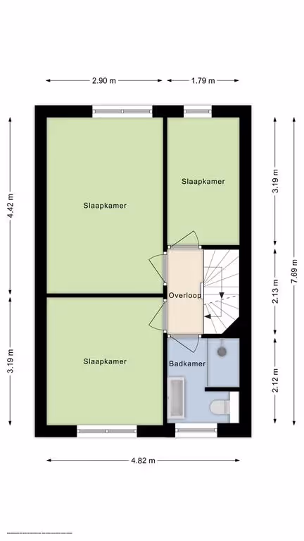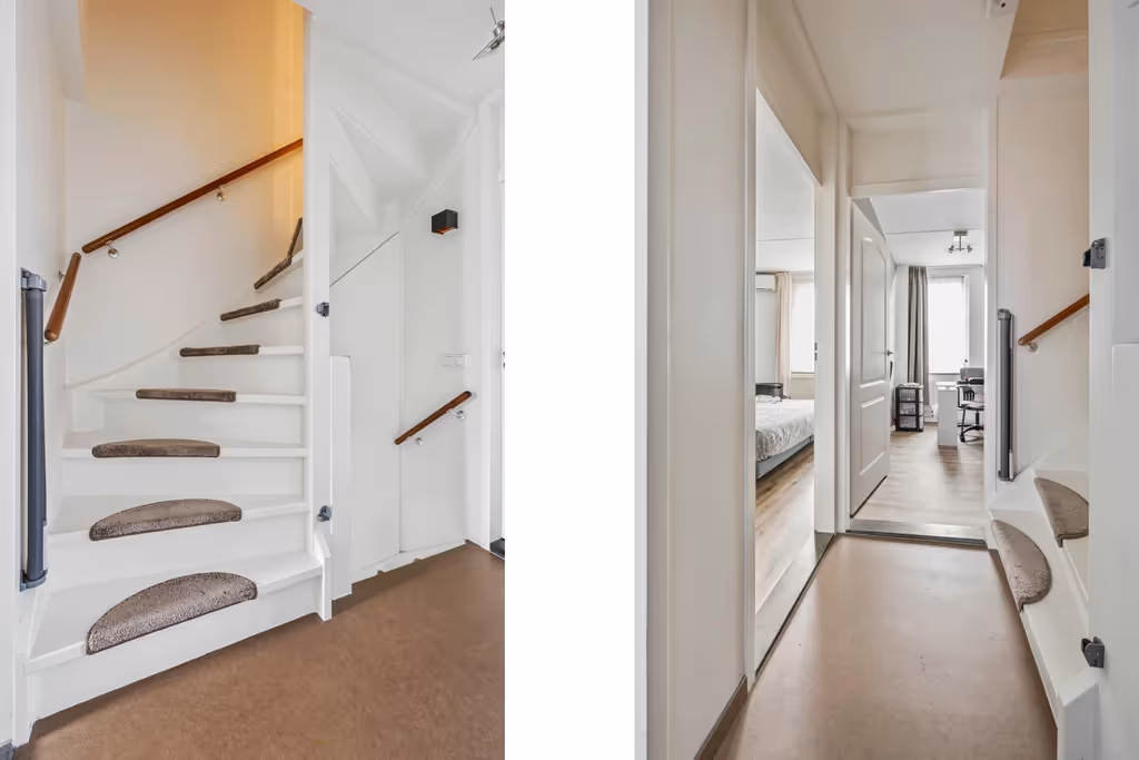 Via de overloop op de 1e verdieping zijn de 3 nette slaapkamers en de moderne badkamer te bereiken. Deze badkamer is geheel betegeld en bevat een 2e toilet, een wastafelmeubel en een inloopdouche. De 3 slaapkamers hebben Novilon vloeren en kunststof kozijnen, met HR++ beglazing en rolluiken. Tenslotte beschikt de hoofdslaapkamer over een airco.