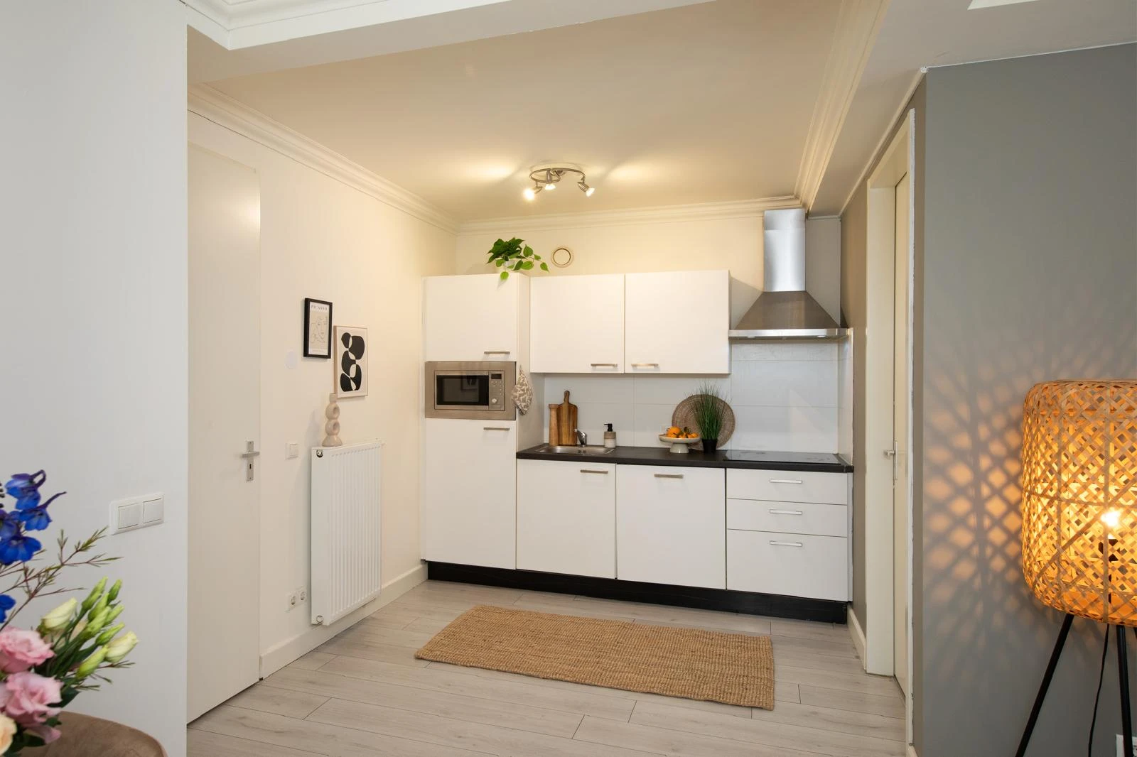 Via de centrale voordeur loop je door de gang naar trapopgang vanr de 1e verdieping, waar Zwartbroekstraat 35A gelegen is.