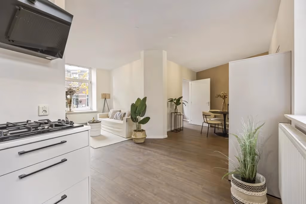 Deze fijne benedenwoning is recent gerenoveerd (2024) en heeft een nieuwe keuken, badkamer, vloer en schilderwerk. De kozijnen zijn van kunststof, dus ook daar heb je geen omkijken meer naar.