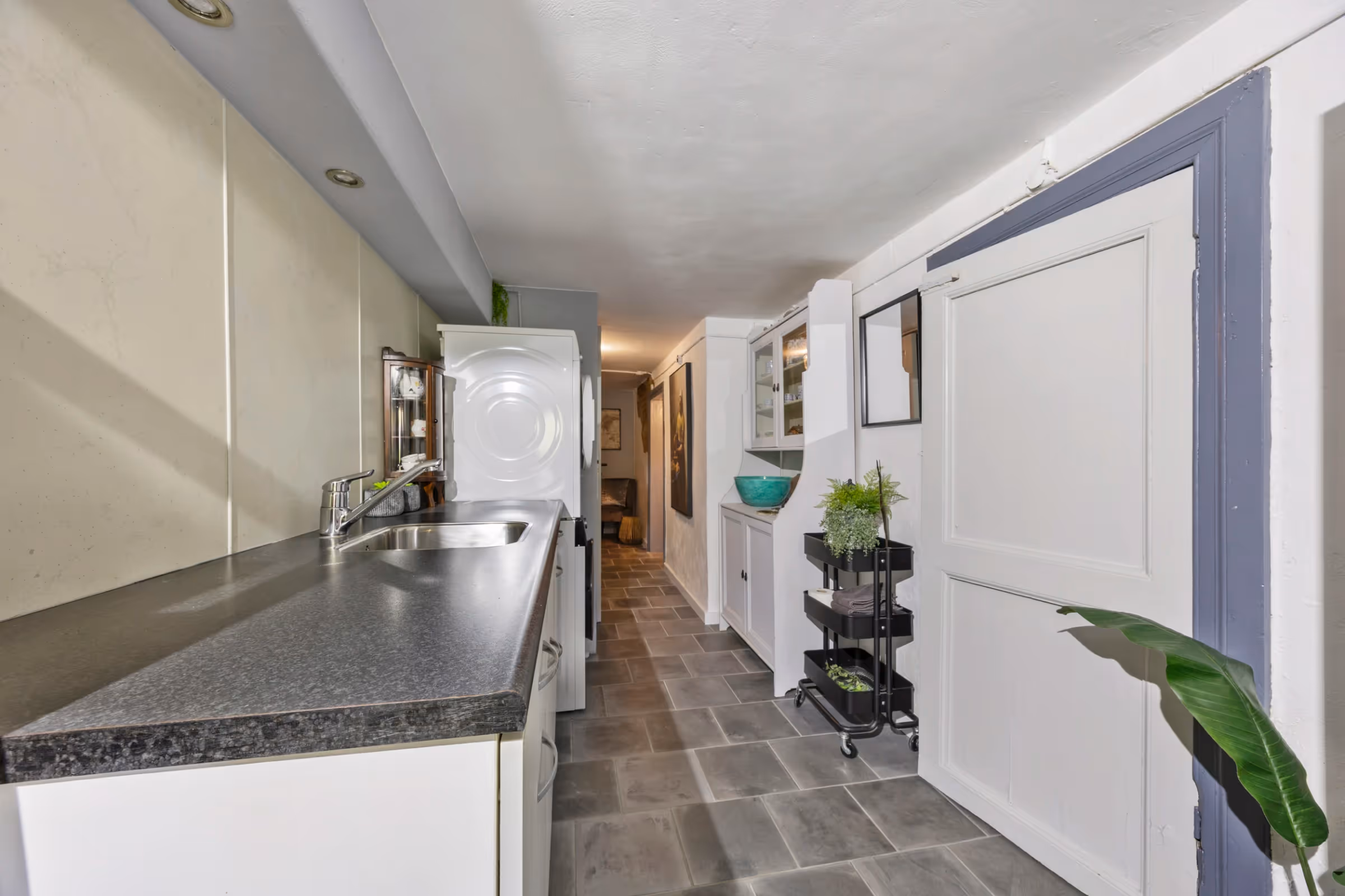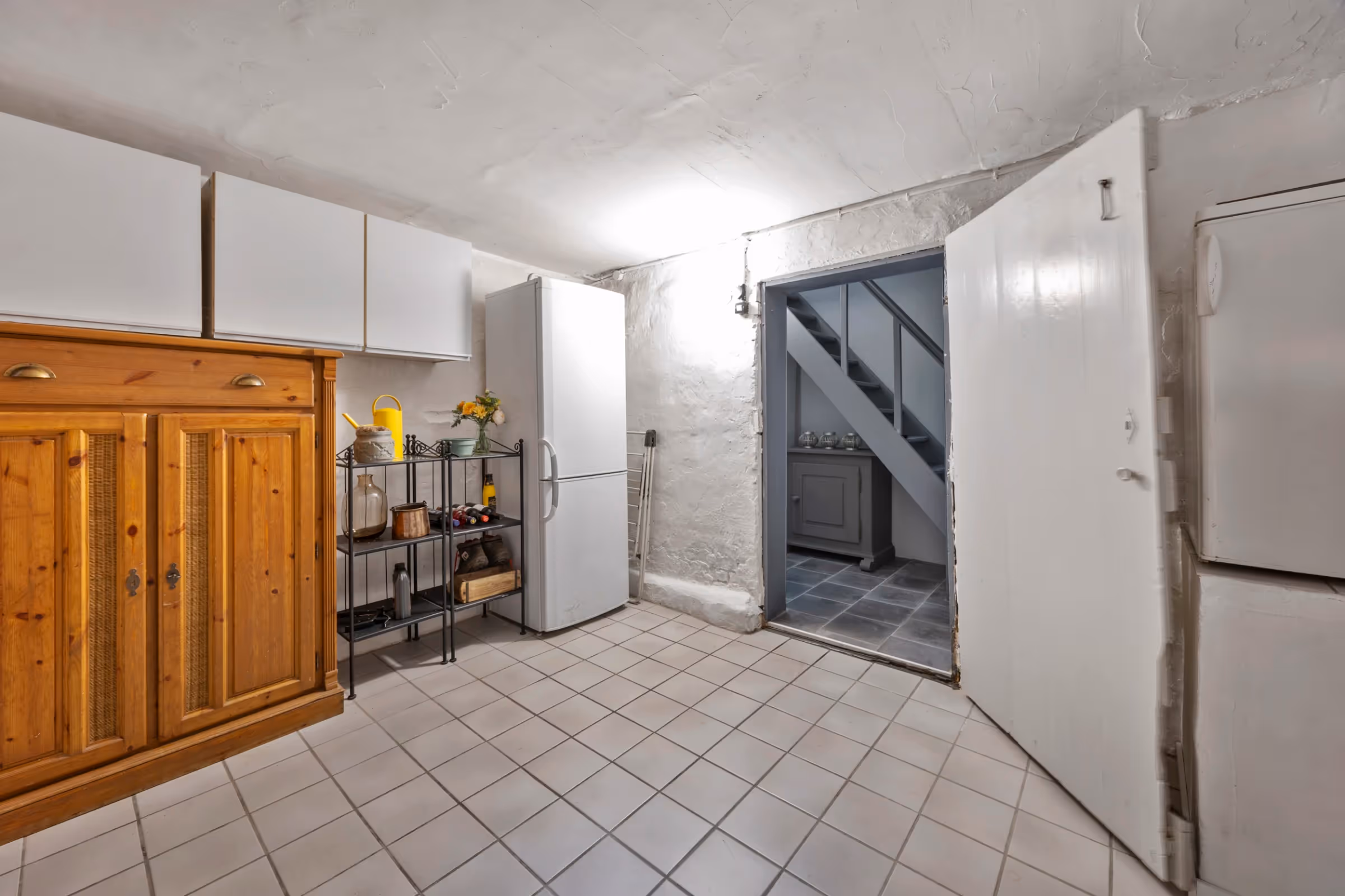 Het souterrain van dit stijlvolle herenhuis herbergt 2 ruime kamers, welke momenteel als bergruimtes in gebruik zijn. Beide kamers, zeker de ruimte grenzend aan de tuin, zouden echter prima als kantoor aan huis, speelkamer of hobbyruimte kunnen fungeren. In de hal van dit souterrain ligt tevens een extra toilet en nog een keukenblok. Via deze hal kom je ook in de tuin aan de achterzijde.