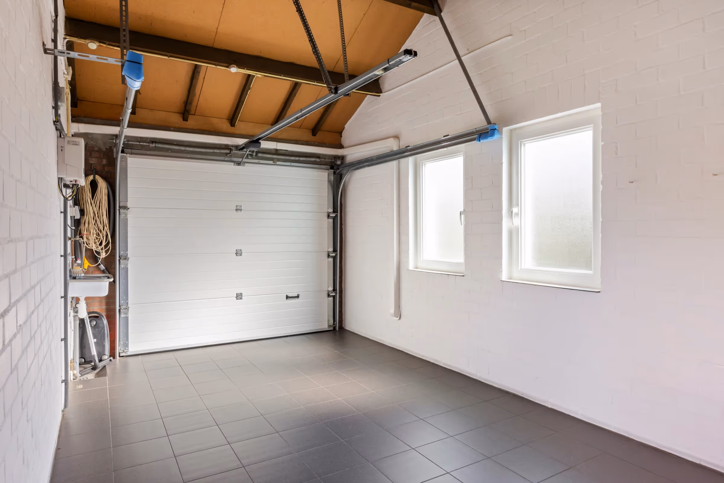 garage (afm. 6 x 3 m), met elektrische sectionaalpoort, een extra wasbak / kraantje en de vloer is geheel betegeld.