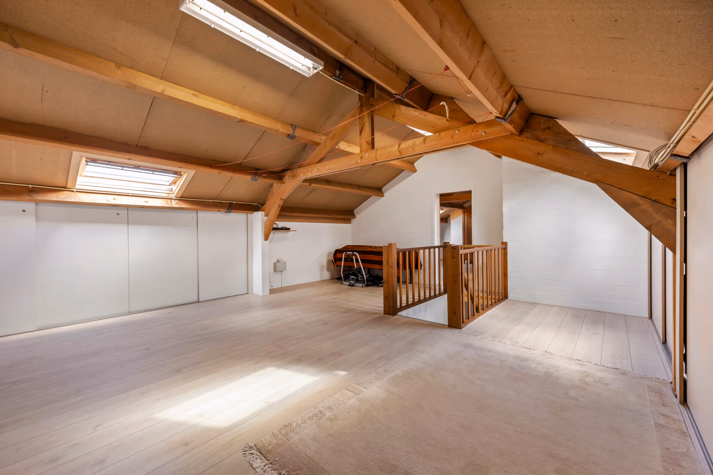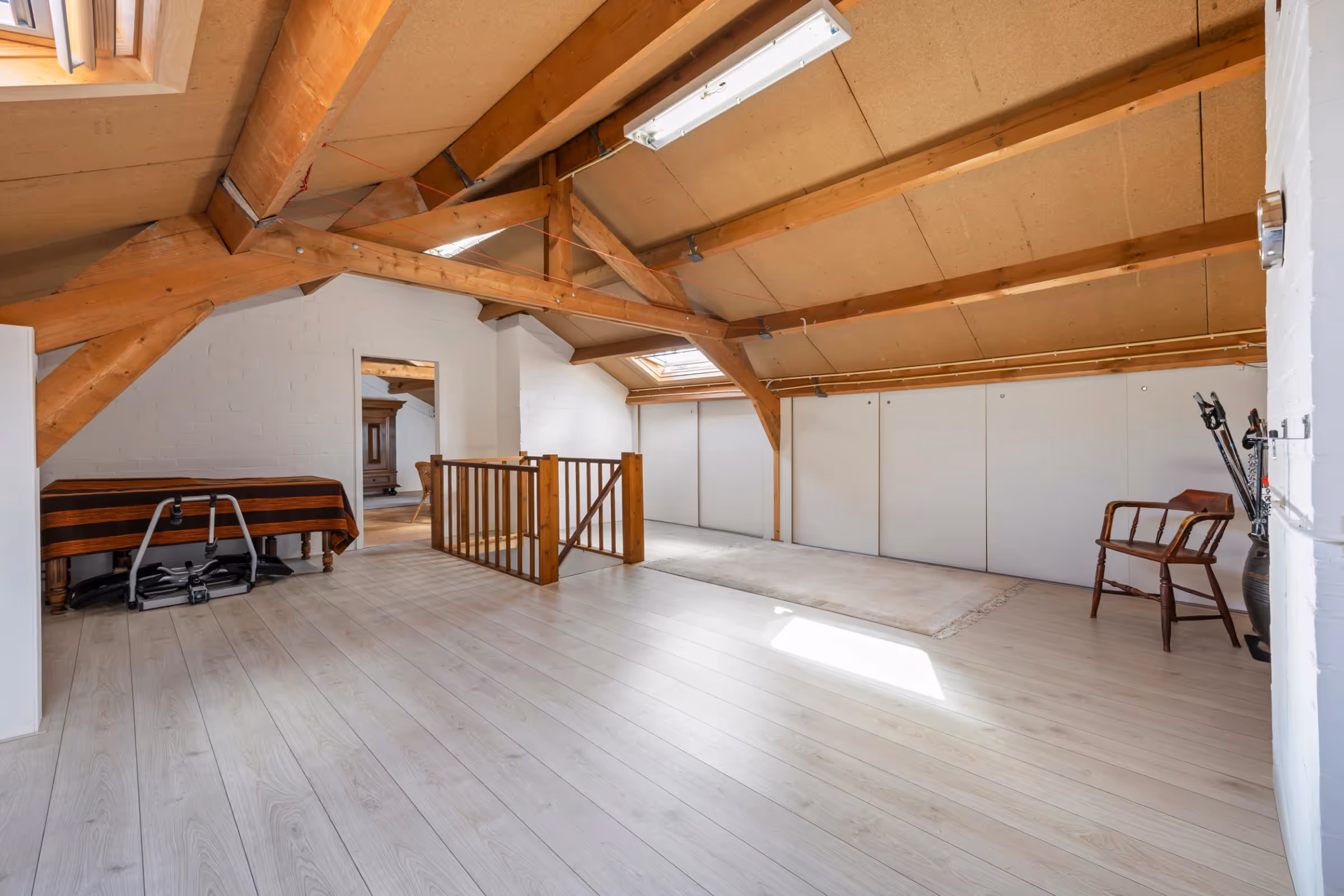De 1e verdieping van deze semi bungalow bestaat uit 2 grote, open kamers. Momenteel zijn deze 2 kamers als berg- en hobbykamers in gebruik, maar het is prima mogelijk om deze als extra slaapkamers in te richten, als u nog thuiswonende kinderen heeft, of als u gewoon een extra logeerkamer wenst. Ook is hier de CV combiketel geplaatst (Intergas, 2021, eigendom).