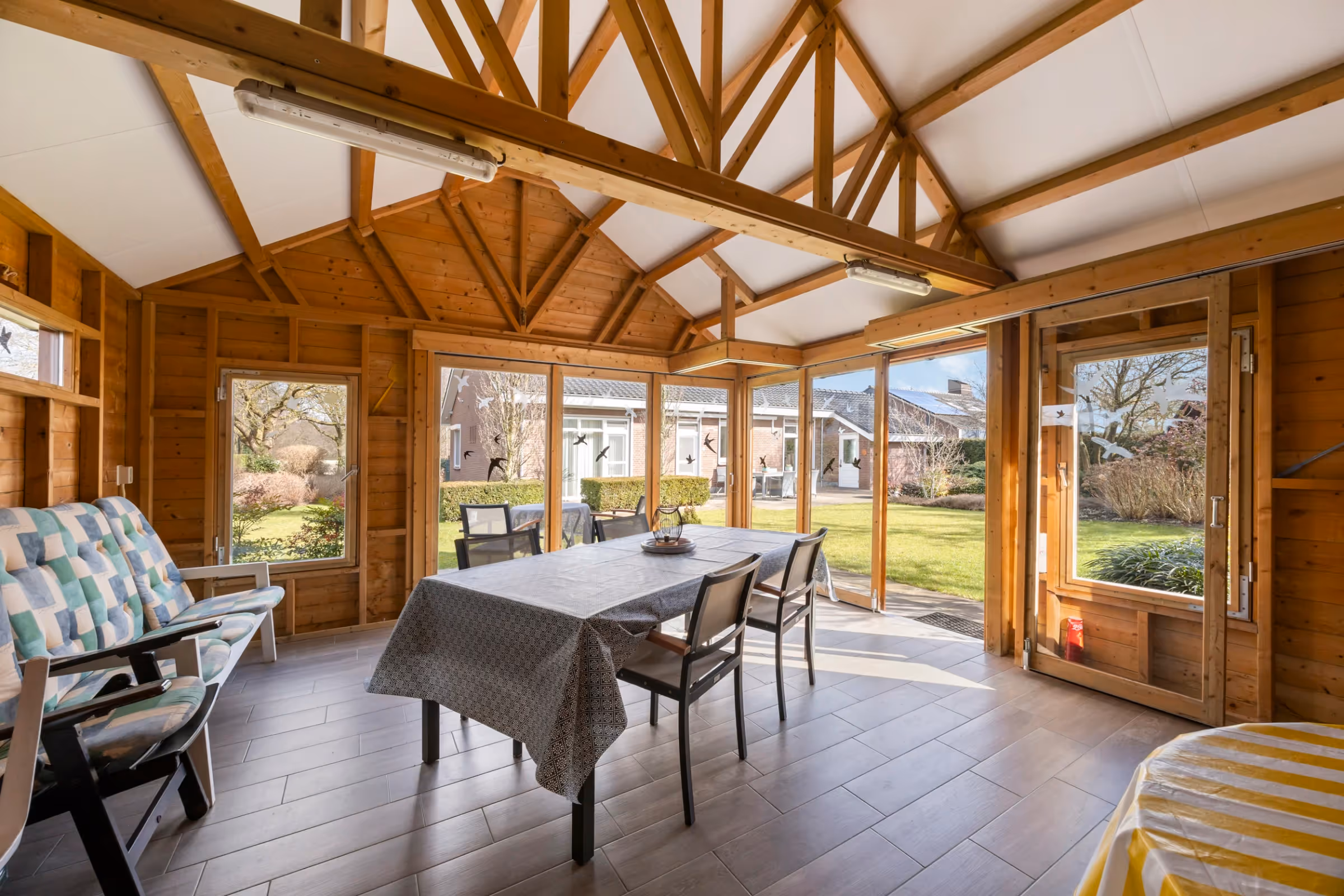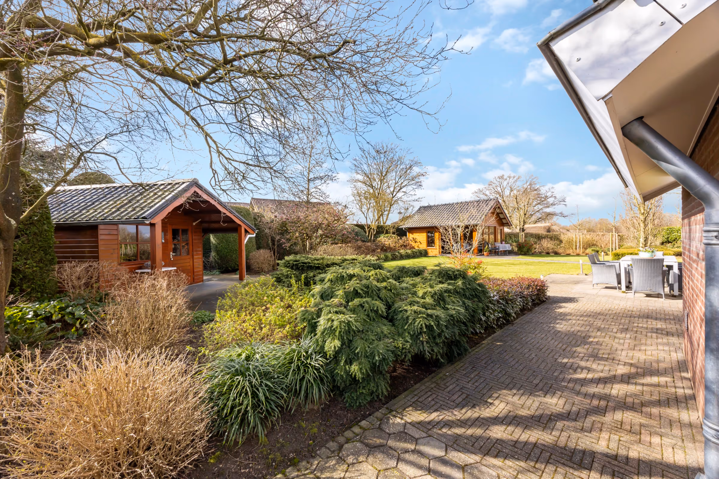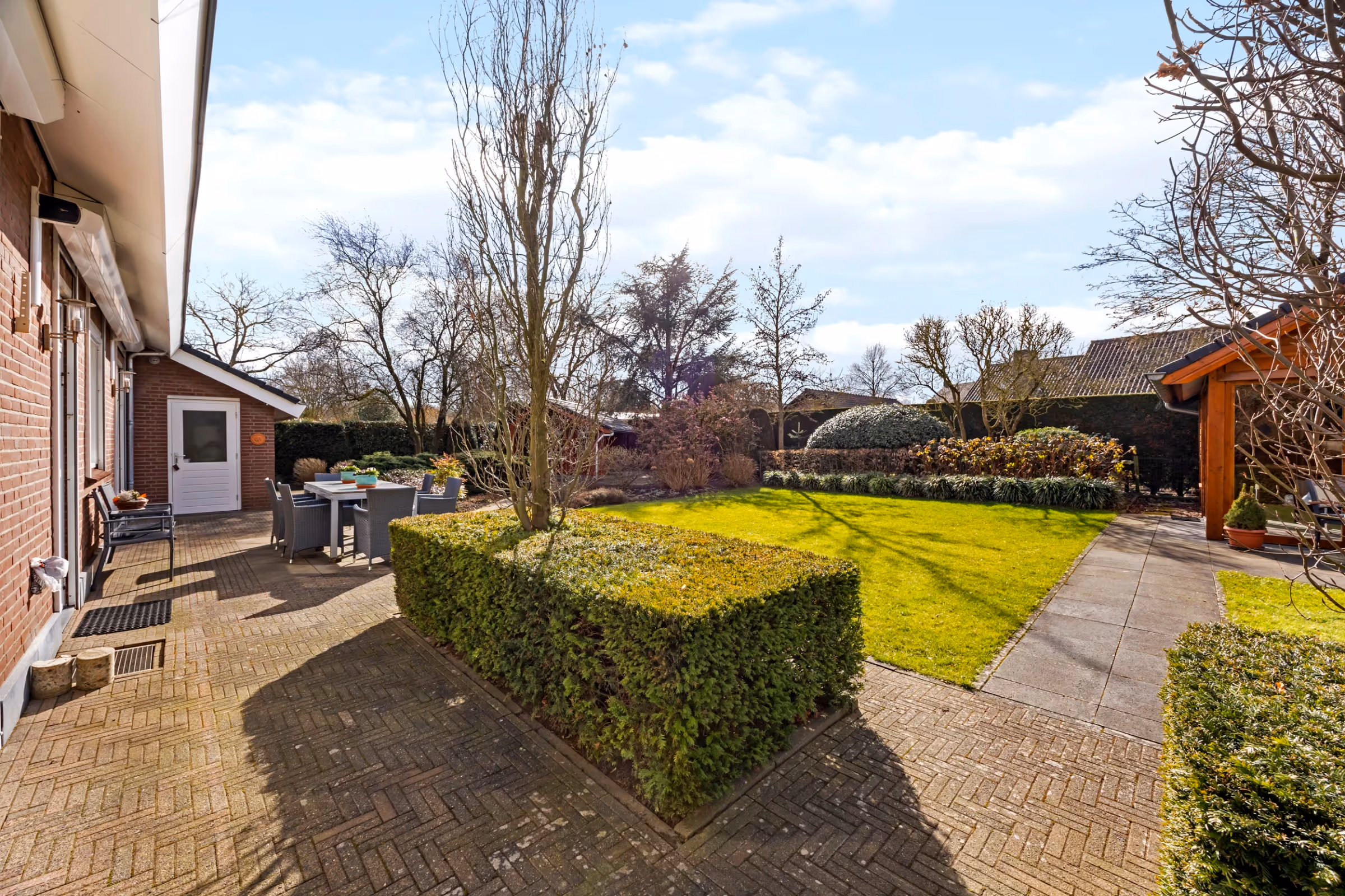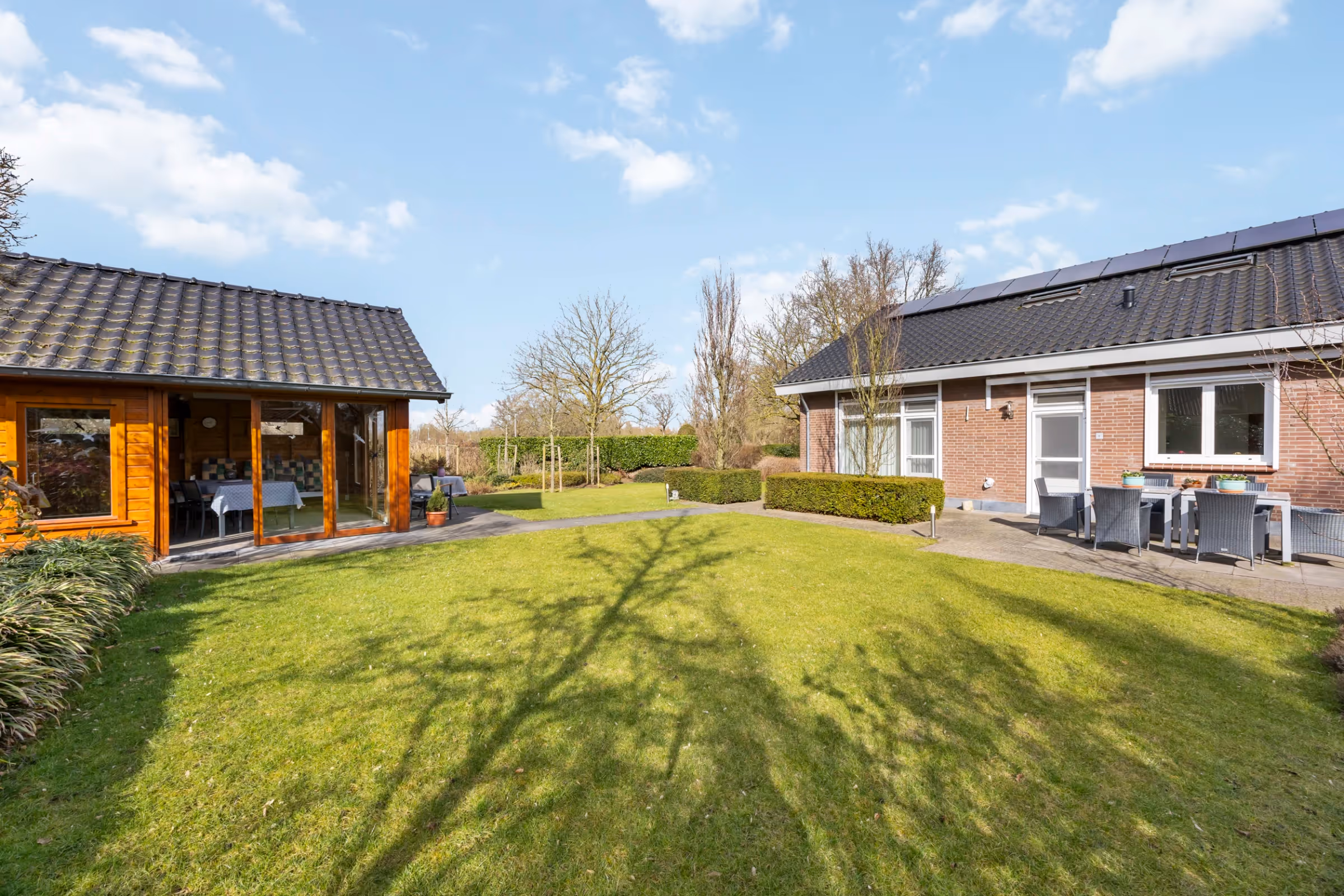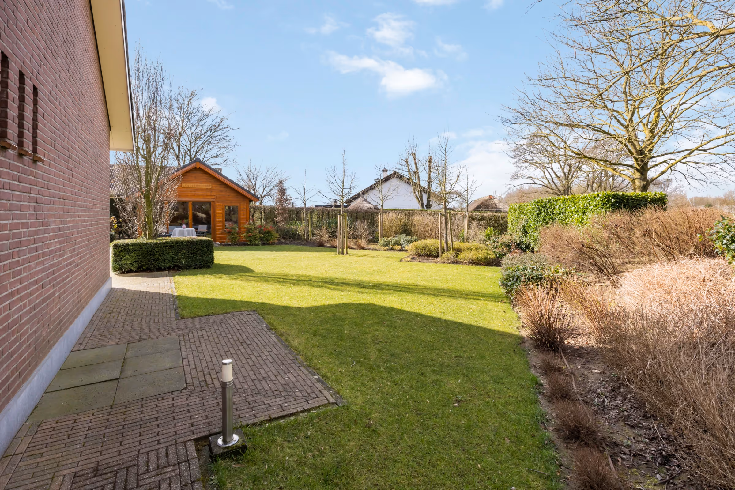 De riante tuin van deze semi bungalow heeft een uitstekende privacy. De zonnige ligging op het Zuid Westen is zeer gunstig en de tuin is onder architectuur aangelegd, met een groot gazon en volwassen beplanting. In de tuin ligt verder een luxe, houten tuinhuis. Dit luxe tuinhuis beschikt net als de woning, over grote raampartijen tot vloerniveau en een tegelvloer. Het is hier dus een groot deel van het jaar heerlijk vertoeven, ook als het buiten wat frisser is. Mocht het buiten wel lekker aangenaam zijn, dan schuift u deze raampartijen gewoon open. Ideaal voor gezellige avonden waar u kunt genieten van deze prachtige tuin!