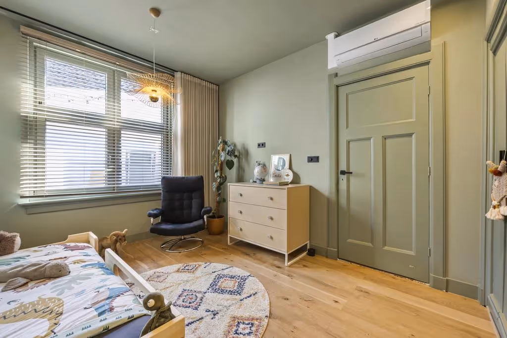 De slaapkamer aan de achterzijde is momenteel in gebruik als kinderkamer en beschikt over een massieve eiken parketvloer, airconditioning, verwarmen en koelen, en twee grote muurkasten. De kamer aan de voorzijde wordt momenteel als kleedkamer gebruikt en is voorzien van een op maat gemaakte kastenwand en een ruime wandkast.