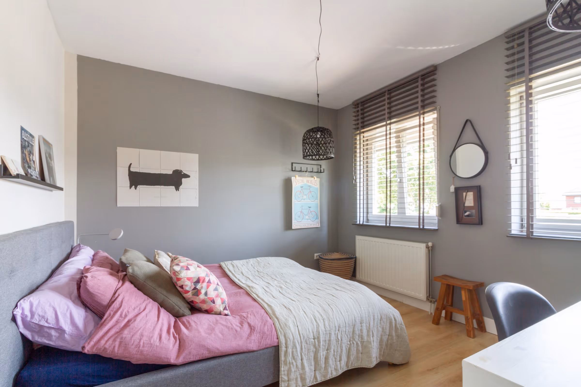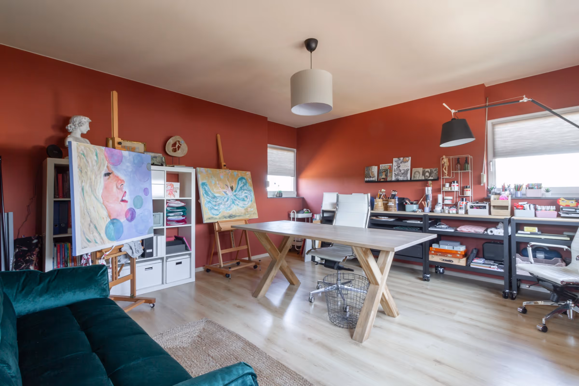 Op de 2e verdieping heeft deze villa nog een verrassing voor haar toekomstige bewoners! Een prachtige slaapkamer, thuiswerkplek of hobbyruimte, met een vloeroppervlakte van maar liefst 20 m² en een prachtig uitzicht over de wijk. Deze fraaie ruimte is nu als atelier in gebruik, maar kan vele woonfuncties vervullen.