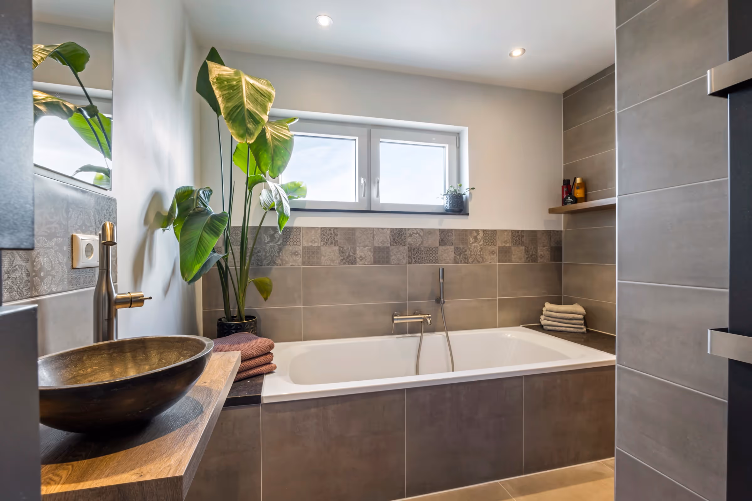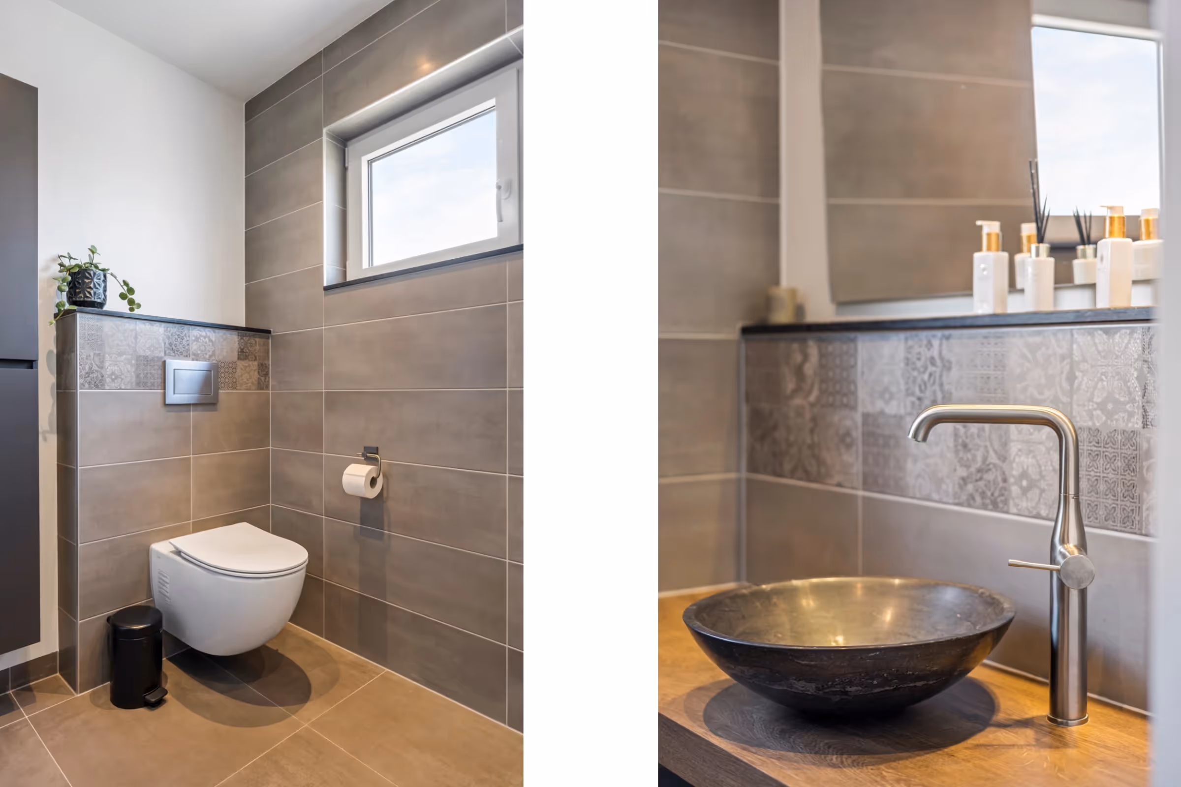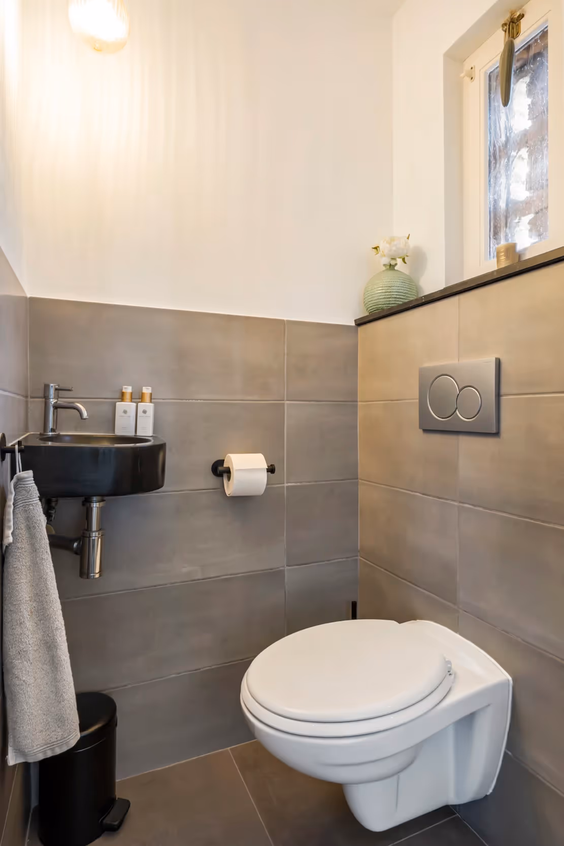 Via de overloop op de 1e verdieping zijn een apart toilet, de nette slaapkamers en de fraaie badkamer te bereiken. Deze moderne badkamer heeft een wastafel, een groot ligbad, een inloopdouche en een designradiator. De beide slaapkamers hebben een keurig niveau van afwerking, met o.a. laminaatvloeren en hier zijn kunststof kozijnen met HR++ beglazing en rolluiken aanwezig. Tenslotte ligt op deze verdieping nog een riant toilet, eveneens met wastafel, waar voorheen de badkamer lag.