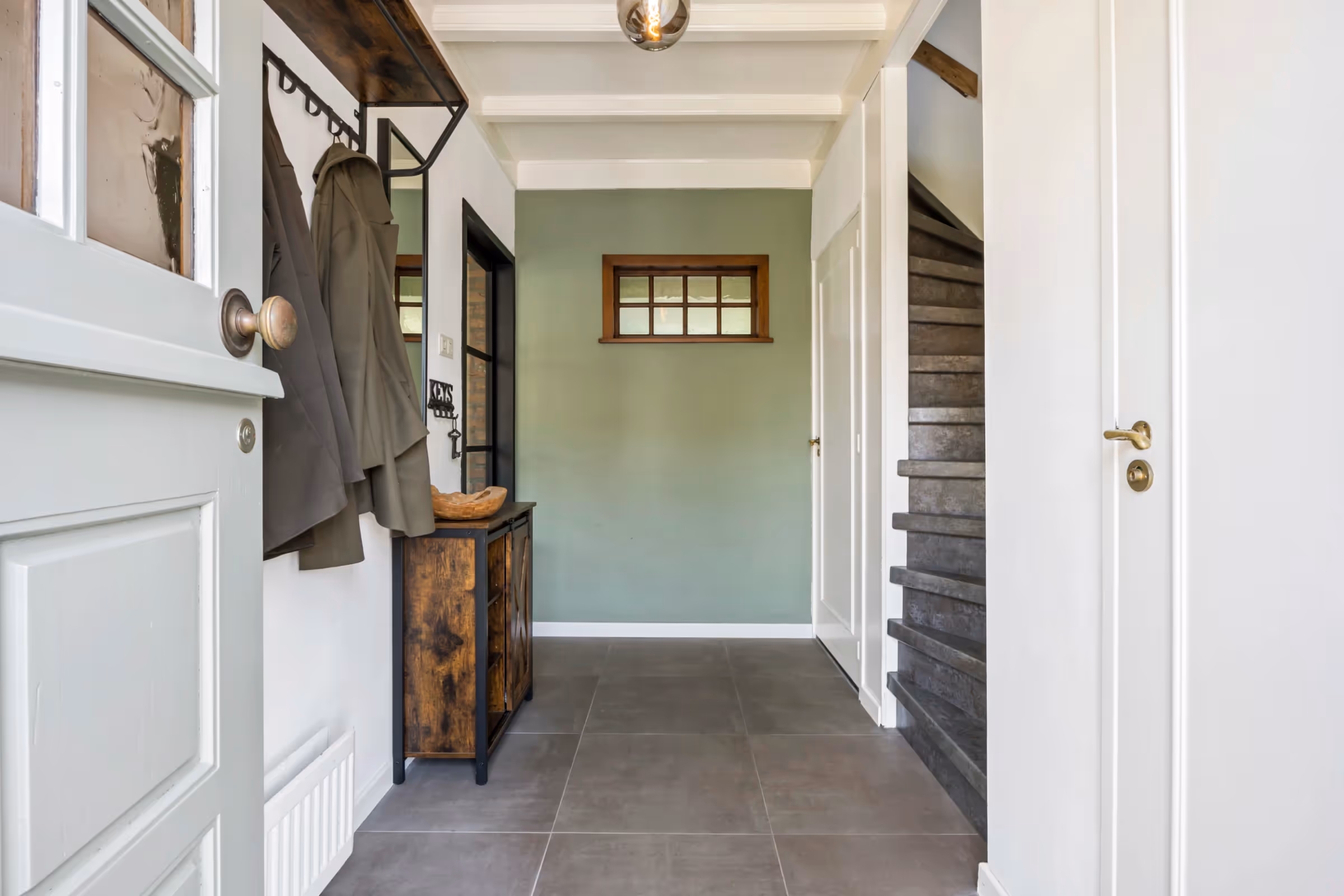 Entree in de hal met modern, zwevend toilet met fonteintje, meterkast en toegang tot de woonkamer. In de woonkamer is er sprake van een mooie lichtinval door de vele ramen en verder heeft de woonkamer een sfeervolle, houten parketvloer. De keuken is apart gelegen en heeft een modern keukenblok met de volgende inbouwapparatuur: een 5-pits inductiekookplaat met afzuigkap, koelkast, combi magnetron en vaatwasser. Ook heeft de keuken veel werkruimte door het grote aanrechtblad en is vanuit de keuken de tuin te bereiken.