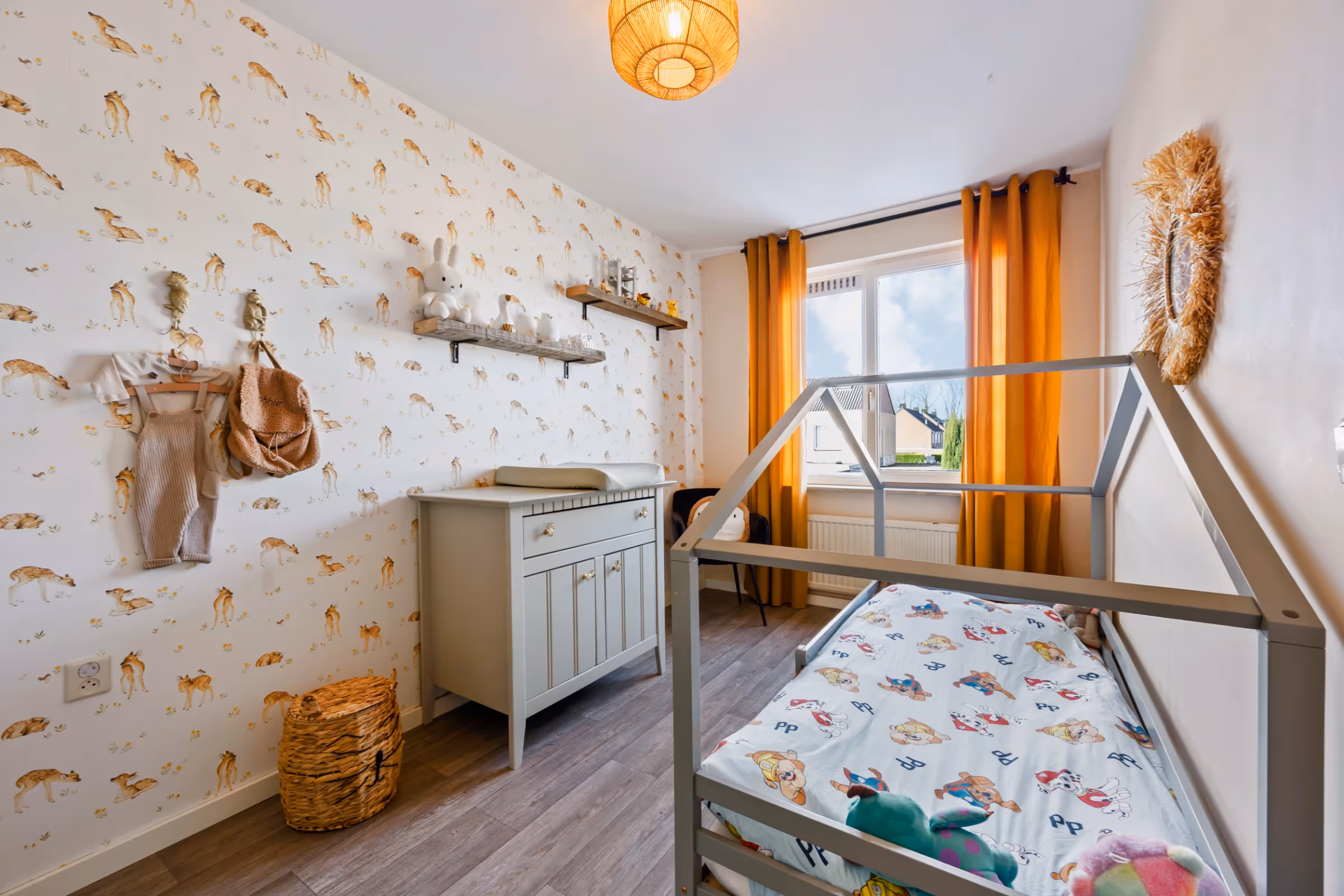 Via de overloop zijn 3 nette slaapkamers en de badkamer toegankelijk. Deze moderne badkamer beschikt over een groot wastafelmeubel, een royale inloopdouche en een 2e toilet. De 3 slaapkamers beschikken allemaal over rolluiken en hebben net als de begane grond, een keurig niveau van afwerking.