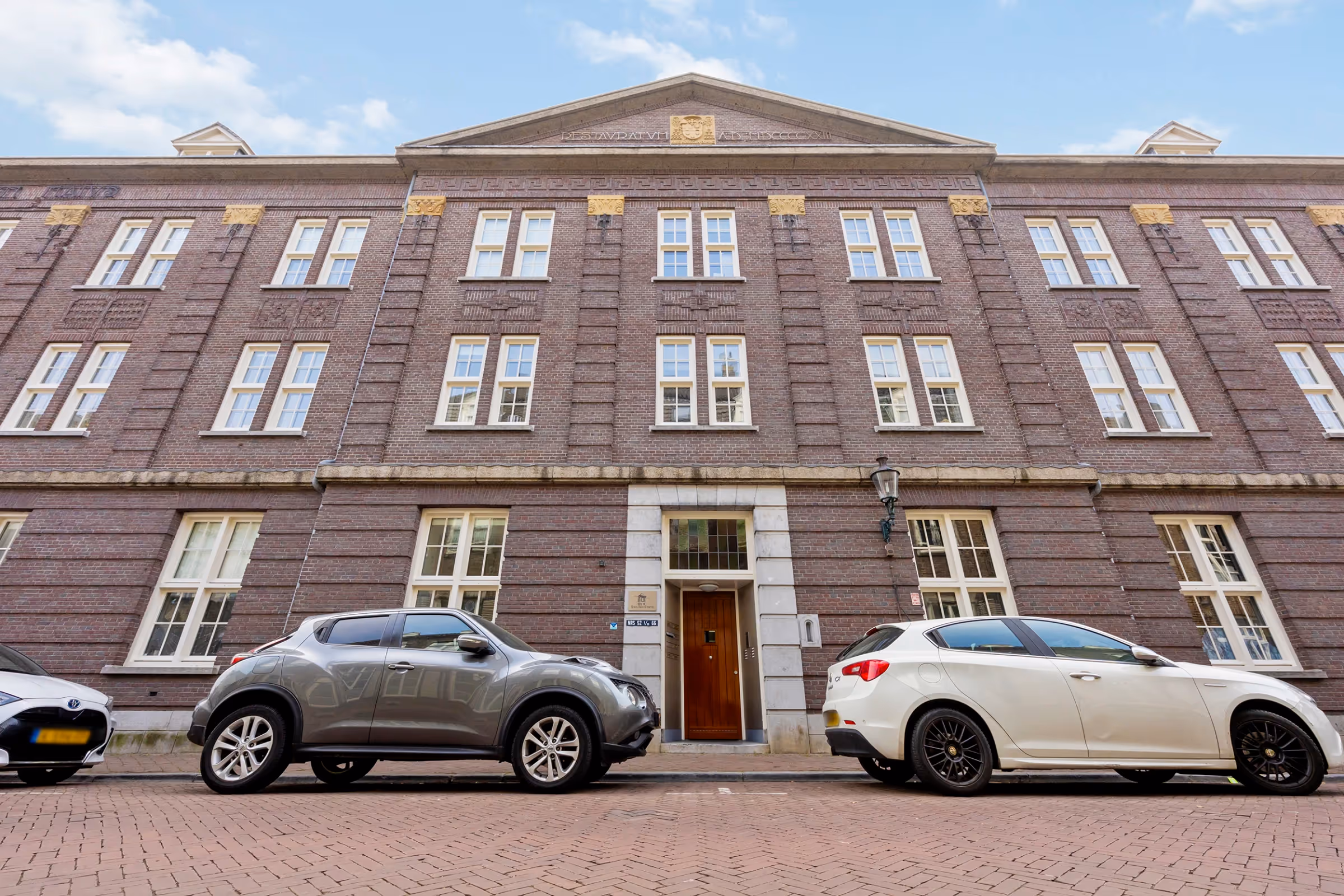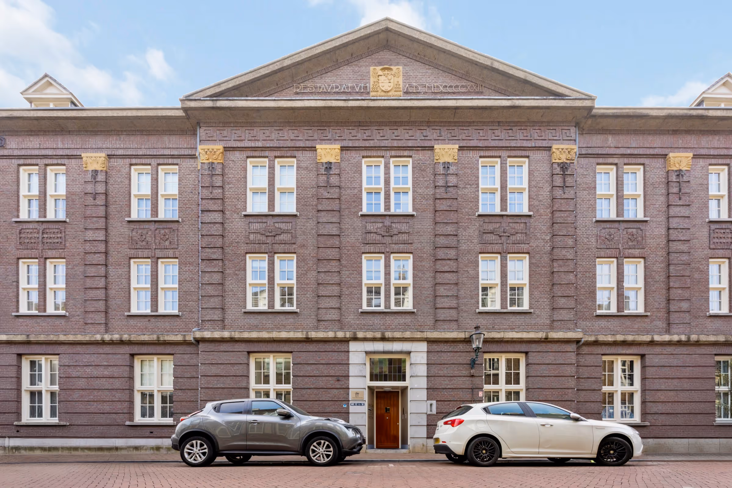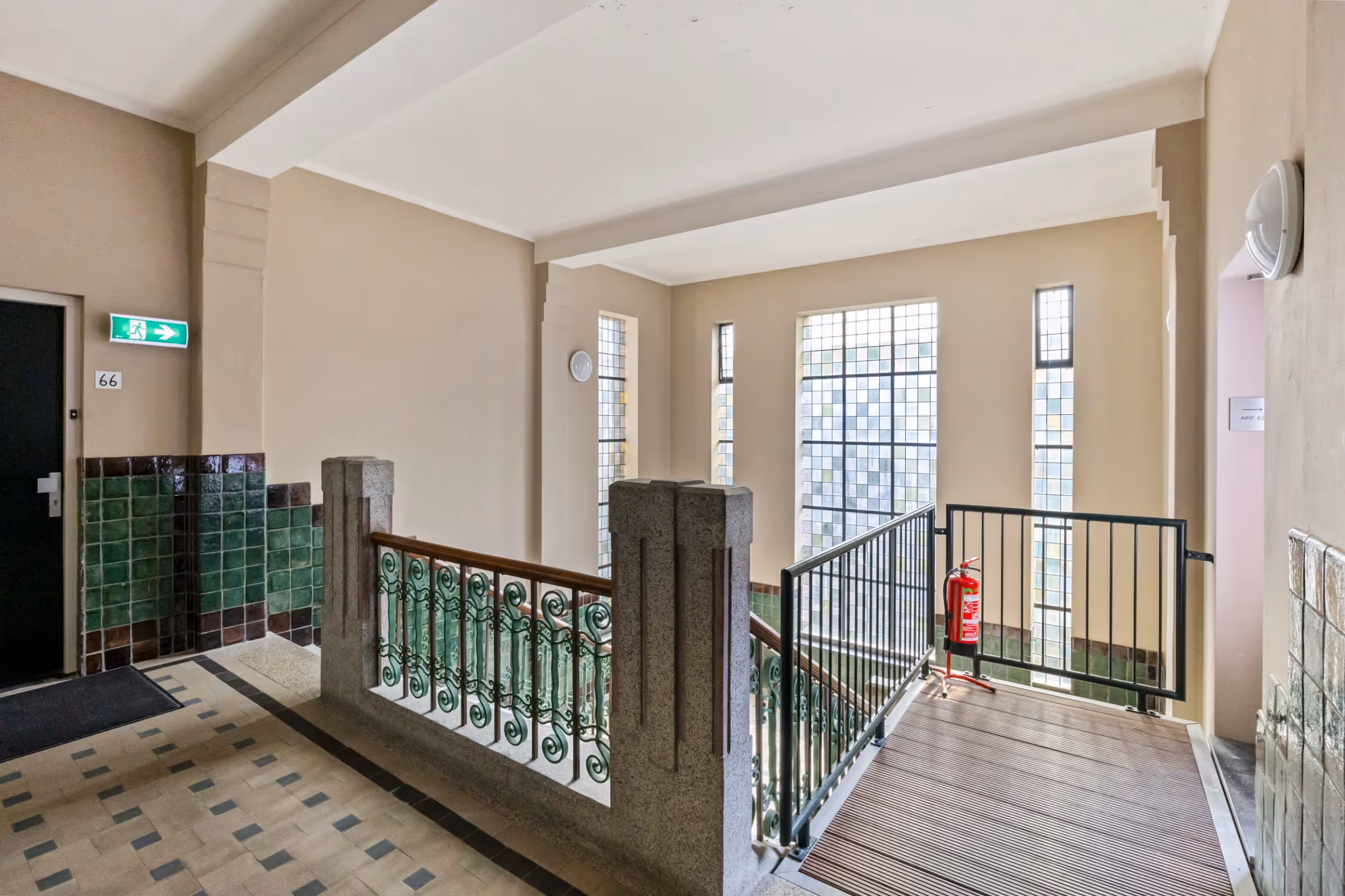 Bij binnenkomst in de entreehal van het complex, valt gelijk de statige, charmante sfeer op. De mooie trappartij leidt naar de verdiepingen, maar er is ook een lift aanwezig.