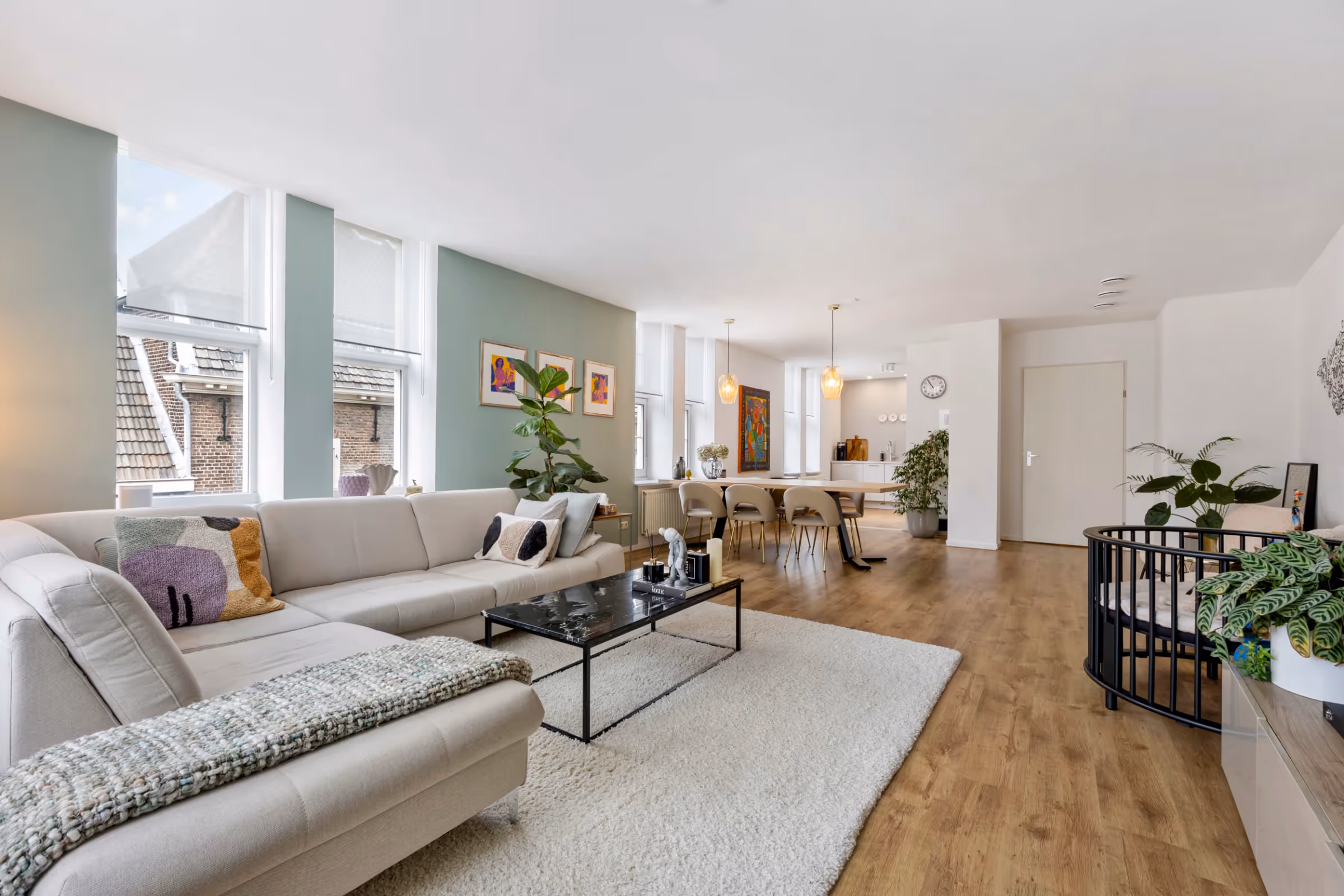 Het complex heeft een lift en dit appartement heeft de loggia omgebouwd tot extra (slaap)kamer, waardoor het in totaal over 3 slaapkamers beschikt. Verder heeft deze sfeervolle woonruimte een nieuwe keuken uit 2023 en is het niveau van afwerking helemaal instapklaar te noemen. Door de ligging op de hoek van het gebouw, beschikt het over een mooie lichtinval en de woonoppervlakte is 120 m².