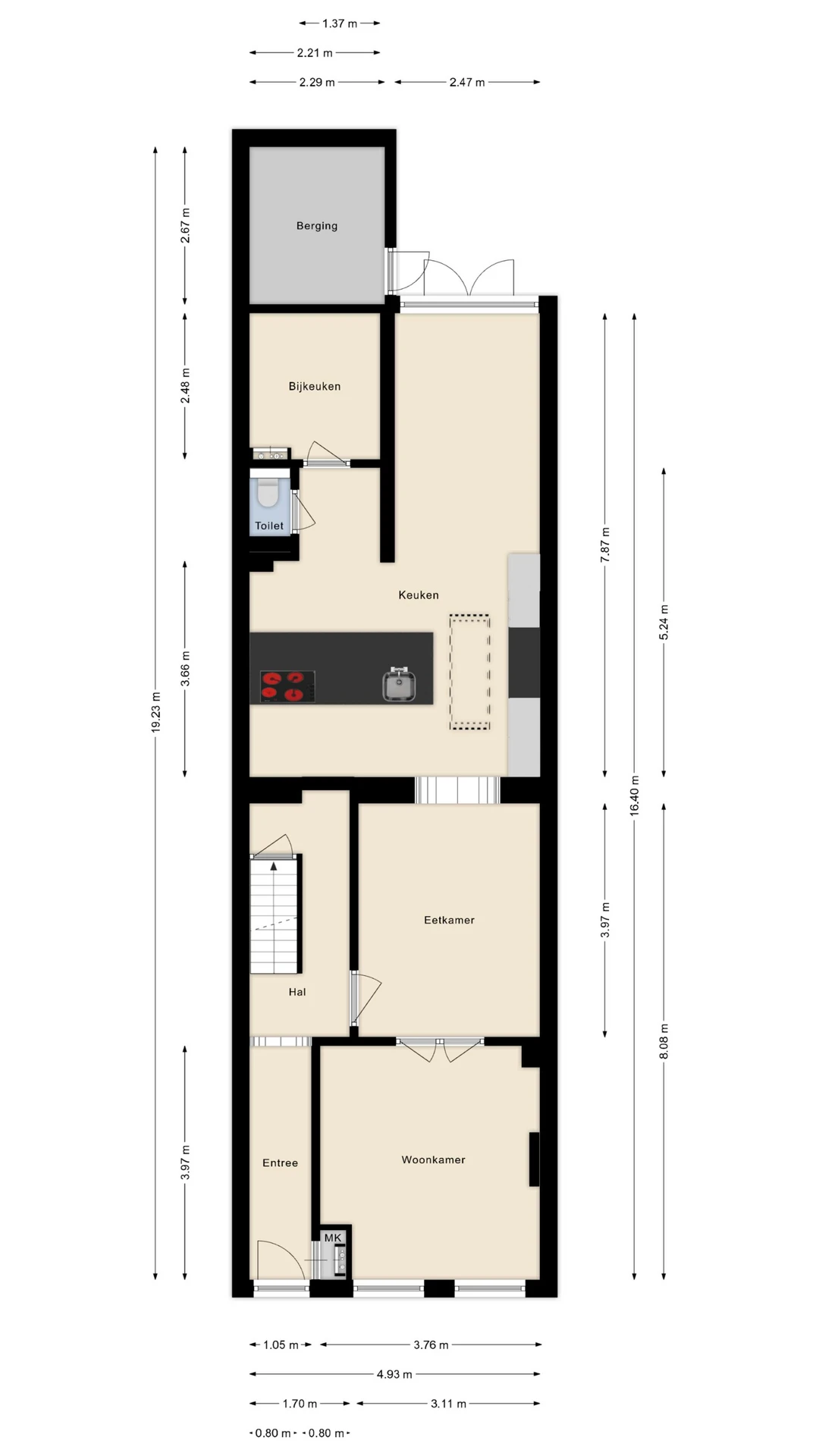 Via de hal is het souterrain van dit woonhuis bereikbaar. Hier is flink wat extra bergruimte