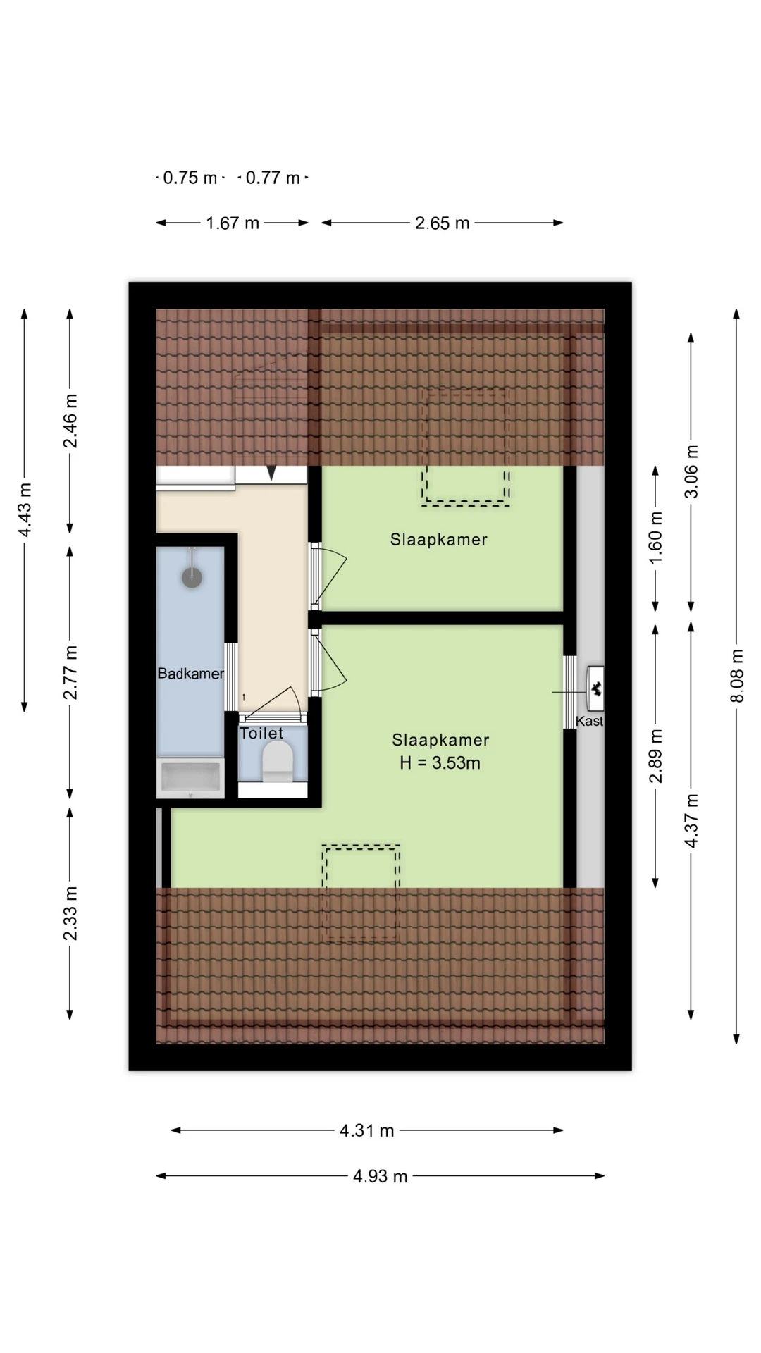De originele houten trappartij loopt door tot de 2e verdieping. Hier zijn vanaf de overloop nog eens 2 ruime slaapkamers, een 2e badkamer en een apart toilet te bereiken. De slaapkamers hebben dakramen en uiteraard is het dak goed geïsoleerd. De slaapkamer aan de voorzijde heeft verder een extra bergkast, waar zich de CV combiketel bevindt (Nefit, eigendom, 2016). De badkamer bevat een wastafelmeubel en inloopdouche.