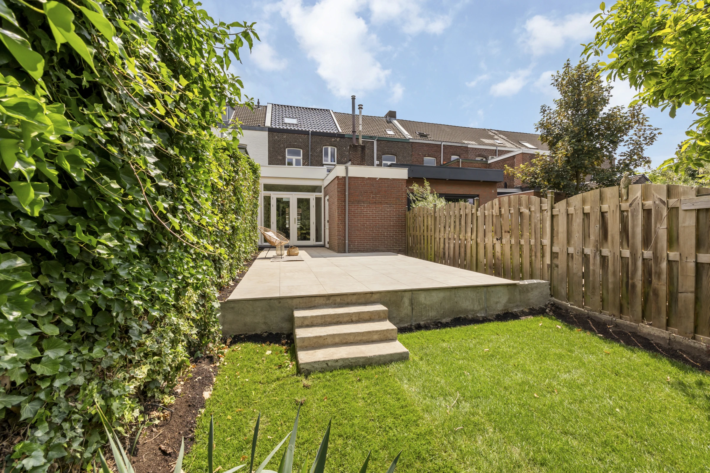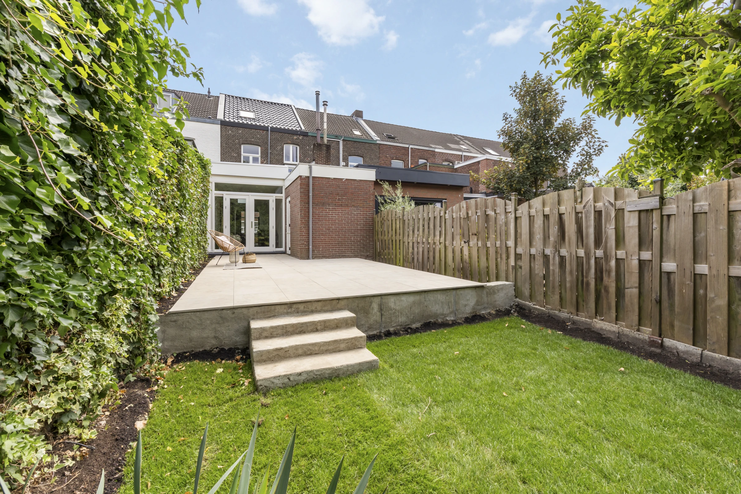 Tenslotte heeft dit sfeervolle herenhuis nog een heerlijke, diepe tuin, waar je kunt genieten van de gunstige ligging met veel privacy. Achter de woning ligt een ruim terras en er is een berging aan de woning gelegen. De tuin heeft een speels niveauverschil (net als alle woning aan deze zijde van de Venloseweg) en is verder aangelegd met een gazon en wat beplanting. Tenslotte heeft de tuin een eigen achterom, bereikbaar via een paadje aan de achterzijde.