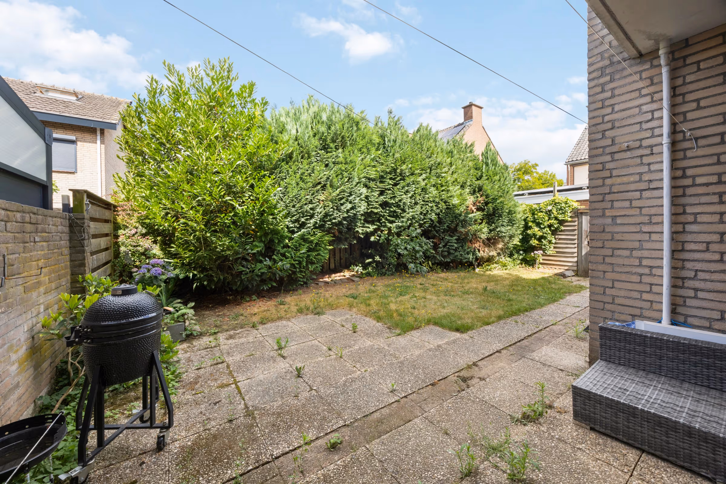 De achtertuin van dit fijne woonhuis is gelegen op het Westen. De tuin bestaat uit een terras en een gazon. Vanuit de tuin is de garage toegankelijk, welke een oppervlakte heeft van 18 m².