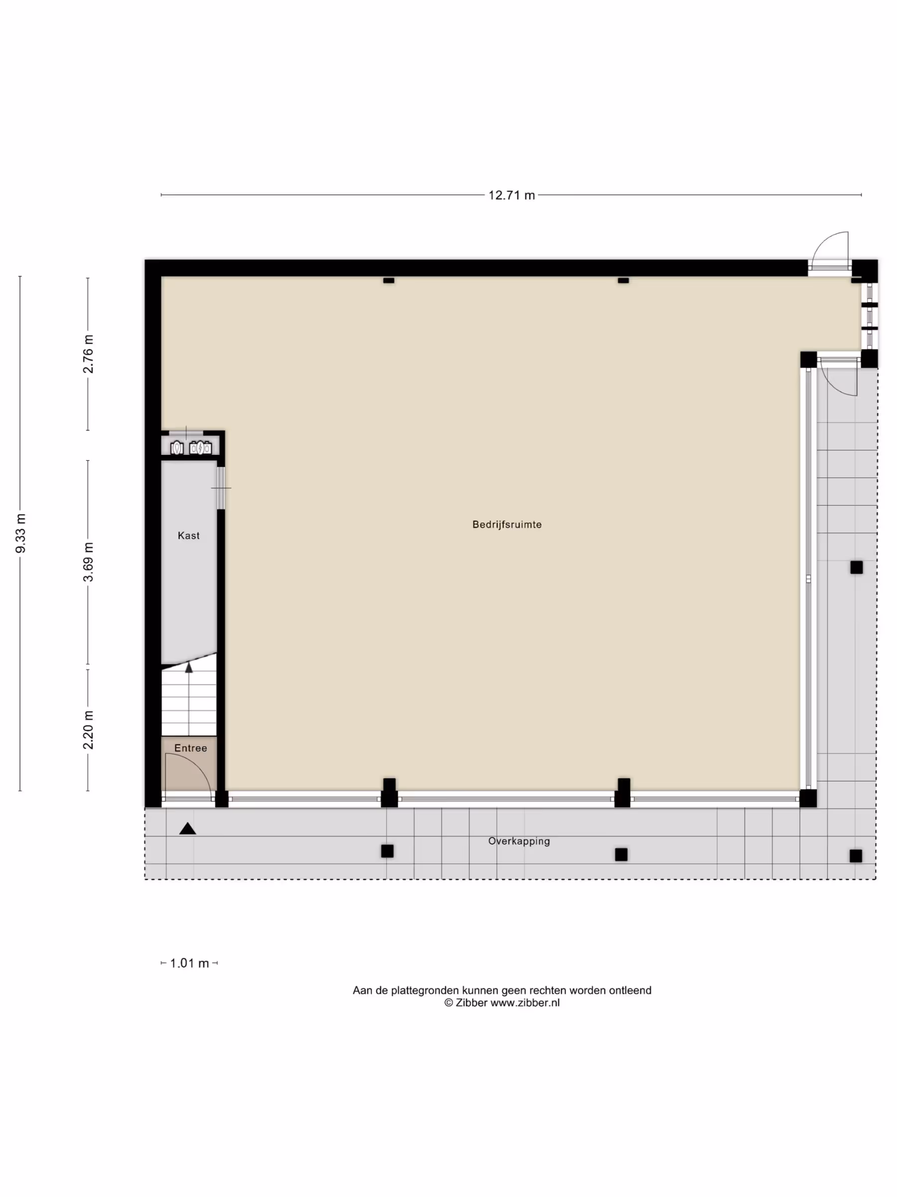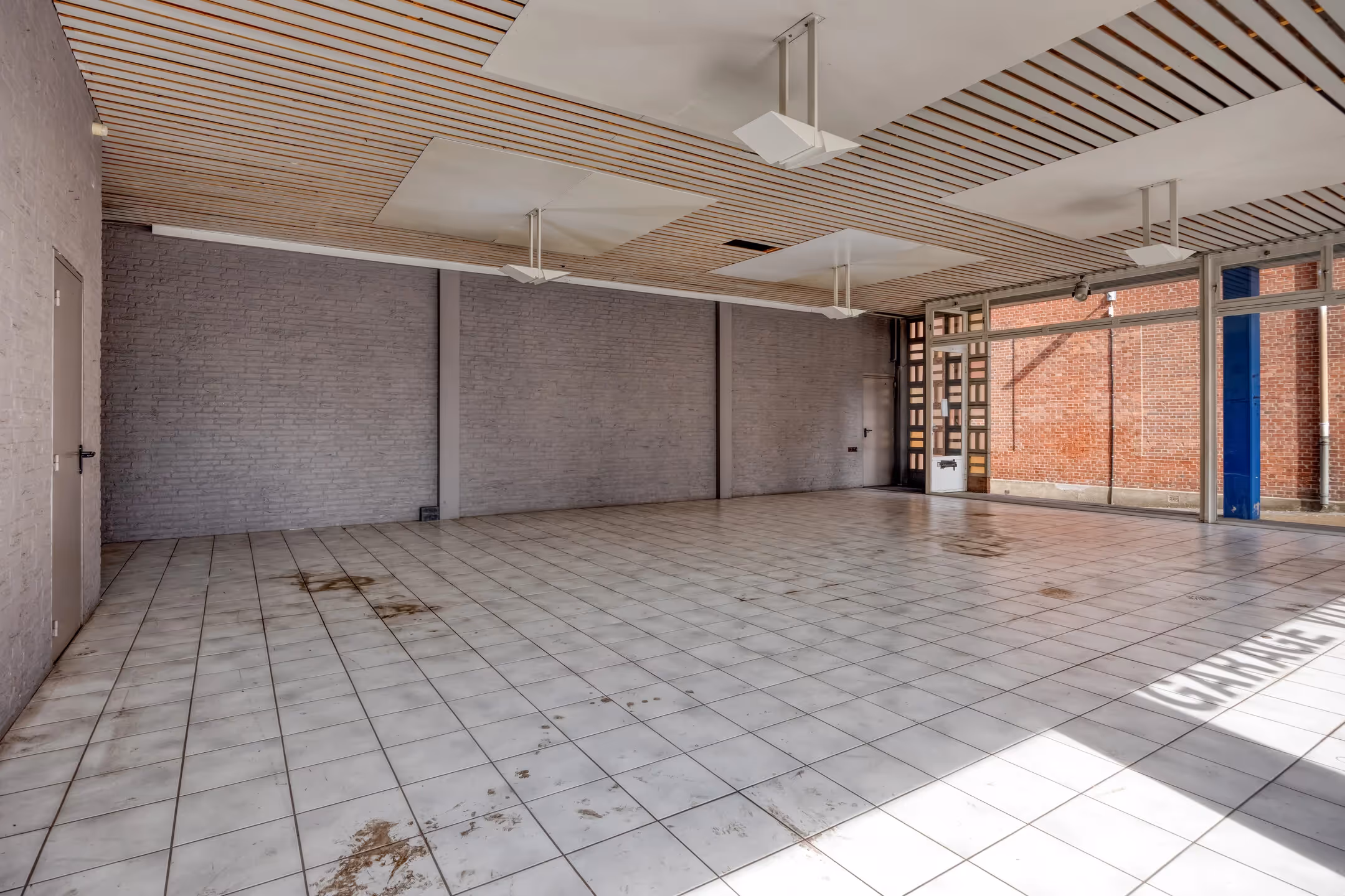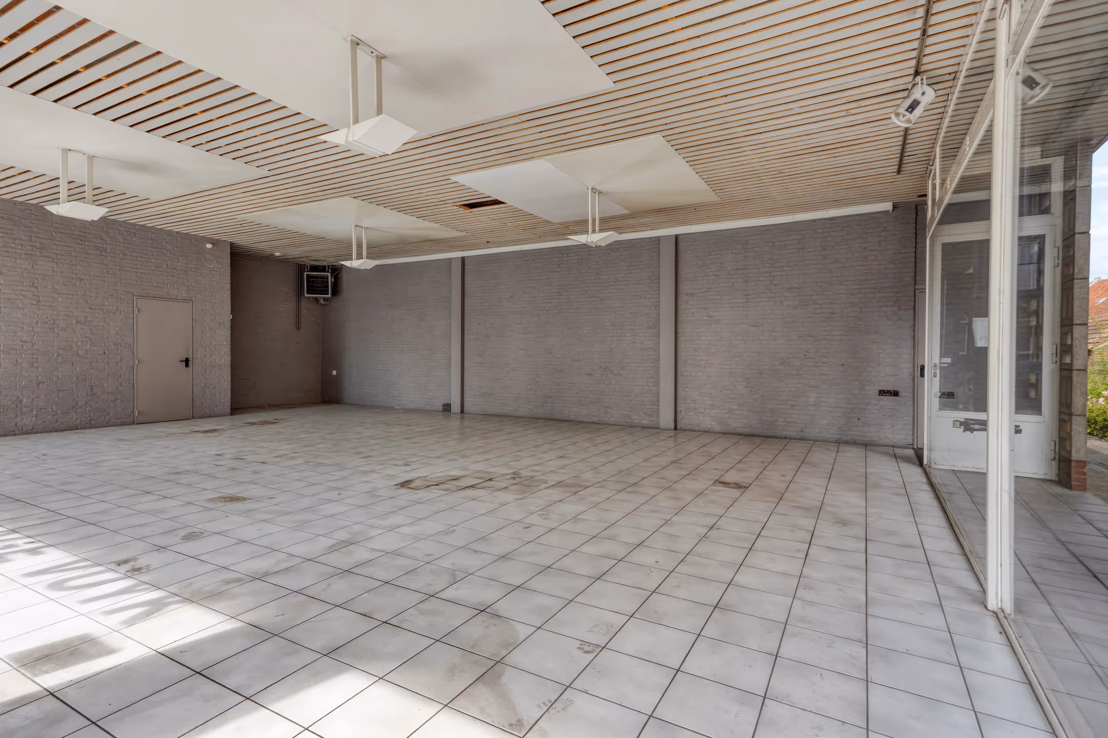 Op de begane grond ligt de voormalige showroom. Deze ruimte heeft een eigen toegang en glazen puien tot vloerniveau, over 2 zijden van het pand. Door de open indeling, kun je hier alle kanten mee op, voor wat betreft je eigen plannen en wensen. De begane grond heeft een oppervlakte van 110 m².