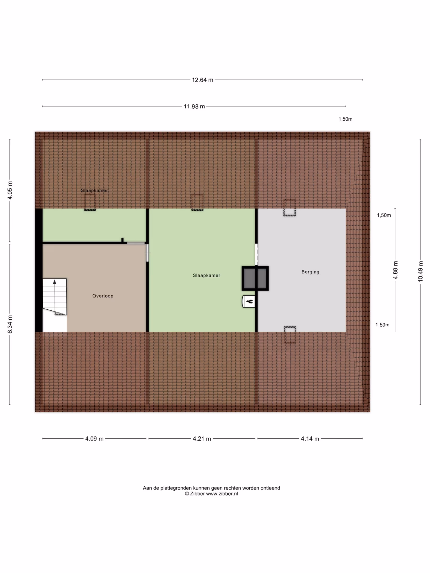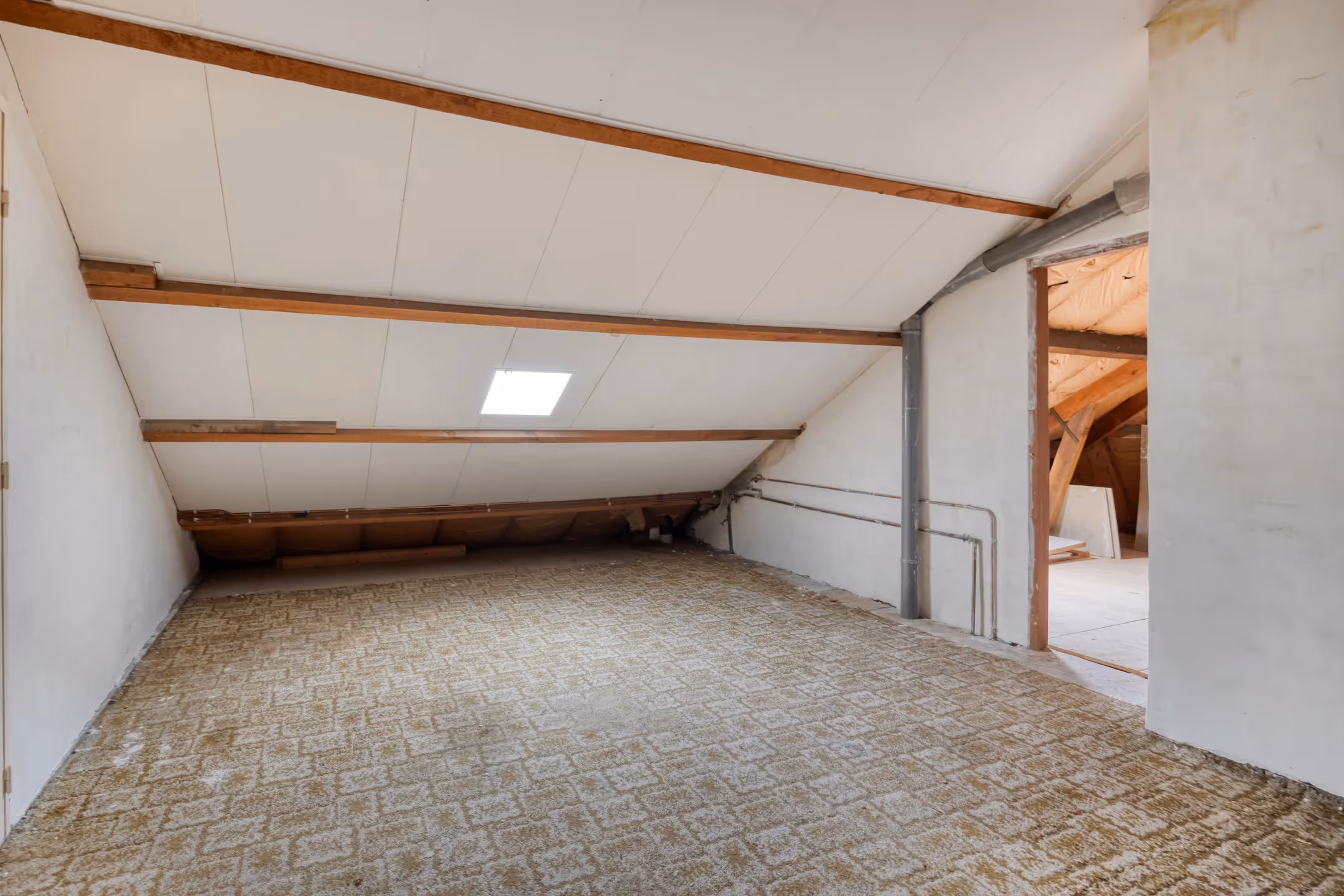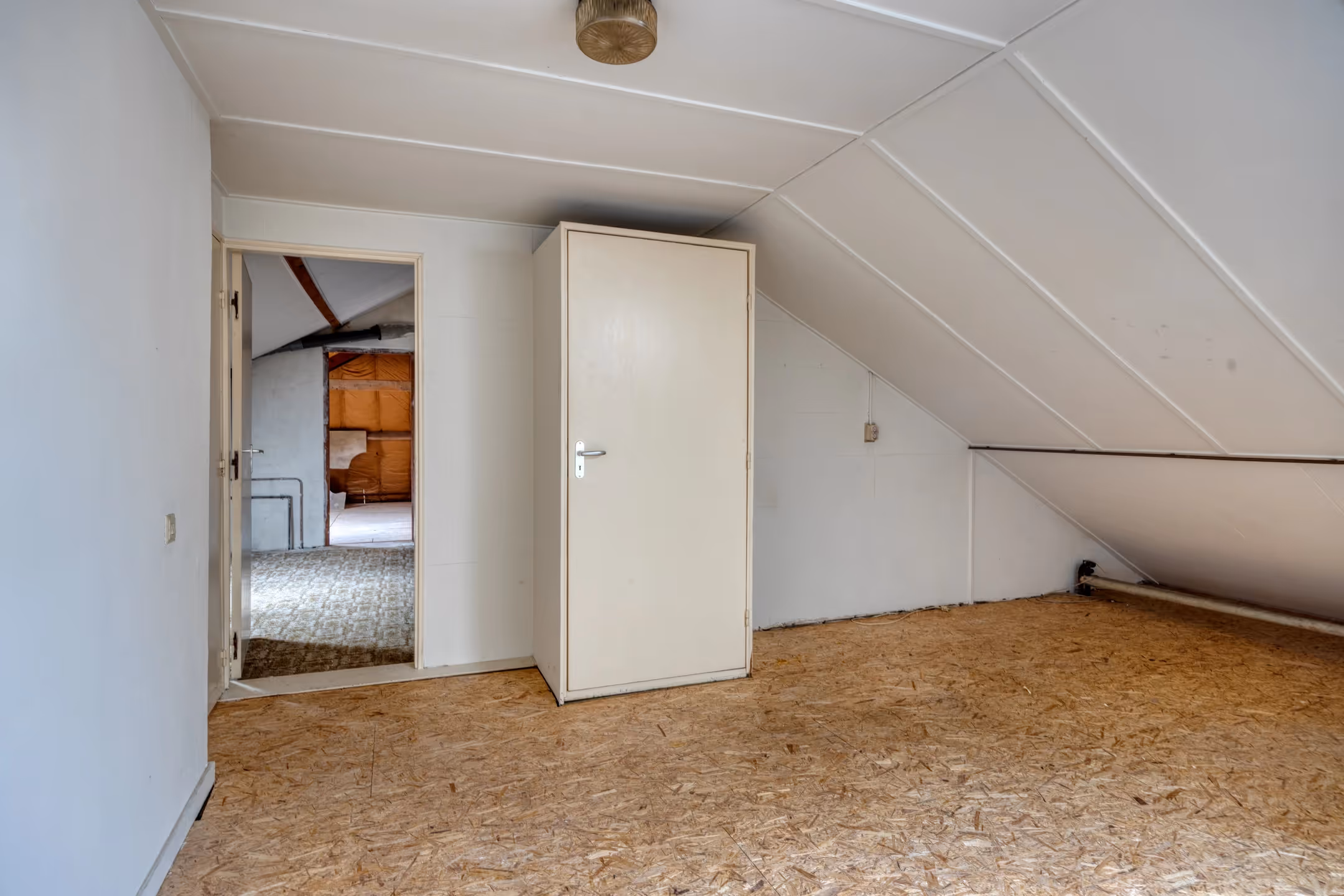 Middels een vaste trap is de 2e verdieping te bereiken. Deze zolderverdieping heeft nog eens veel (leef)ruimte en hier hangt deze C.V. combiketel. De oppervlakte van deze verdieping bedraagt 57 m².