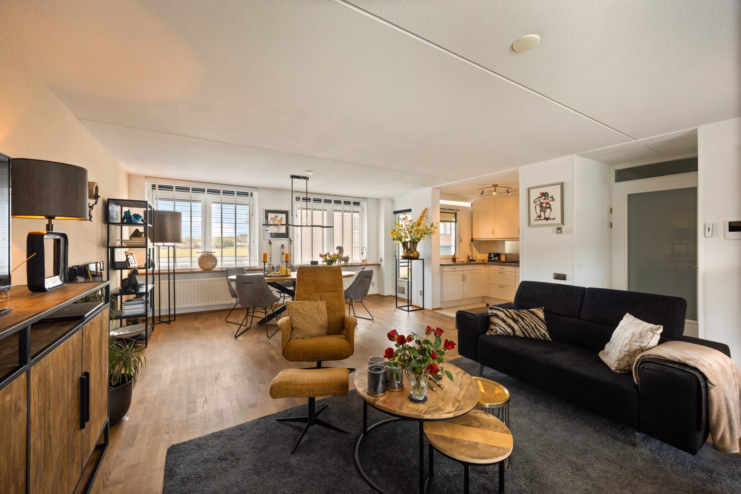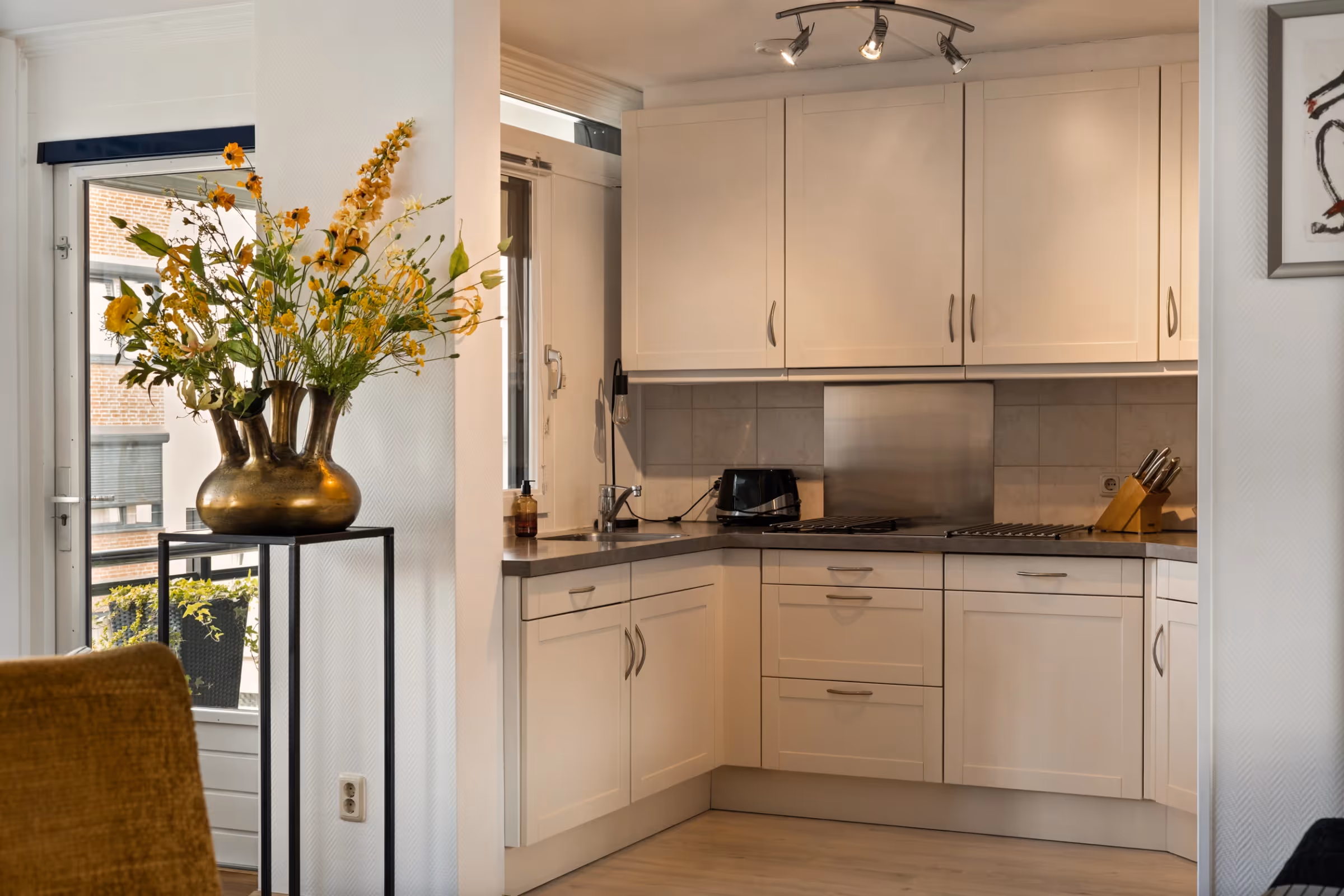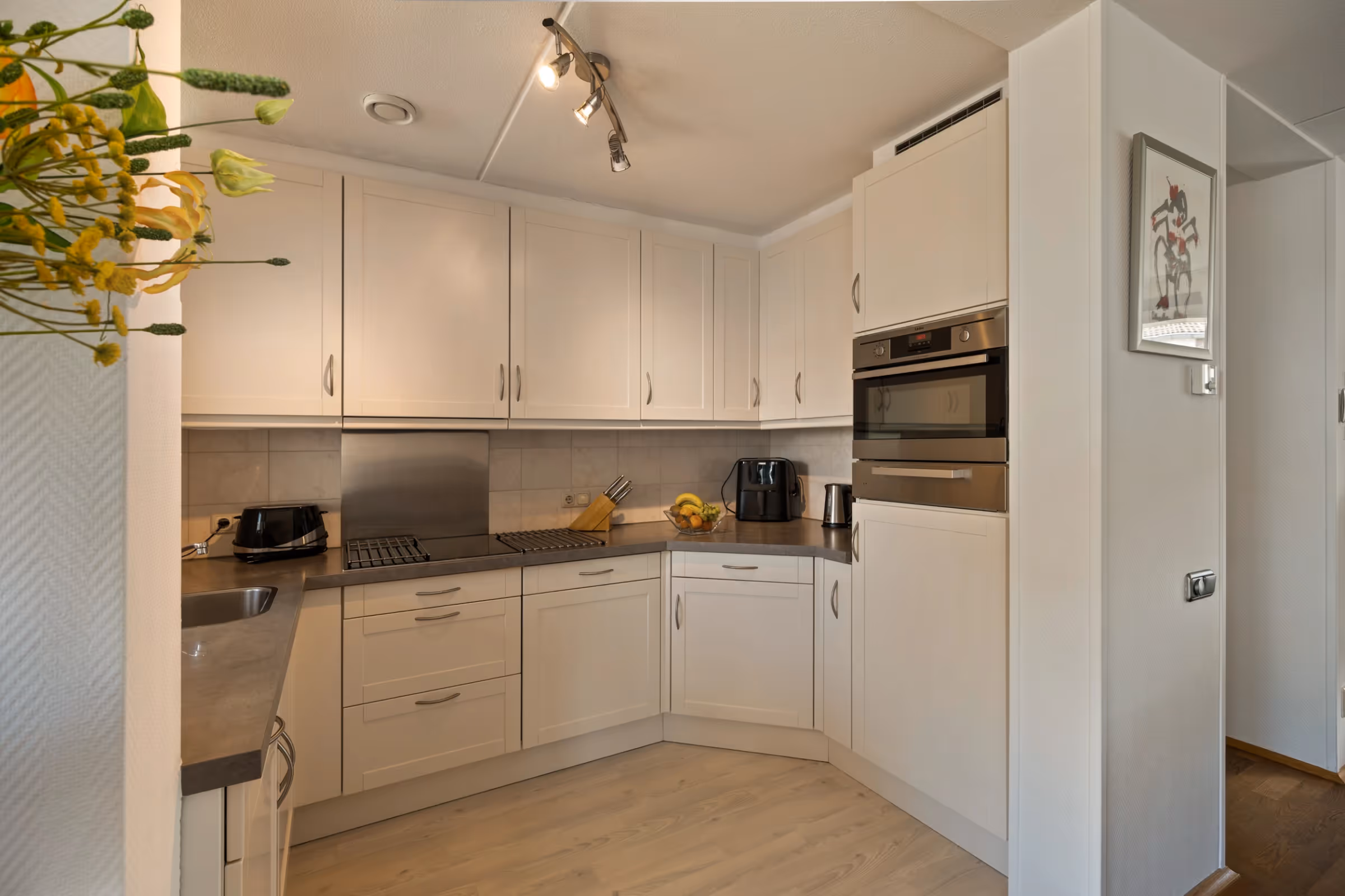 Het appartement is gelegen op de 3e verdieping. Entree in de hal, met meterkast en toegang tot de diverse kamers. De woonkamer is heerlijk licht en heeft een uitstekend niveau van afwerking. De keuken staat in open verbinding met de woonkamer en heeft een hoekopstelling met alle comfort die u mag verwachten; een inductiekookplaat, afzuigkap, koelkast, combi-oven, bordenwarmer en vaatwasser. Voorts beschikt de woonkamer over een rolluik aan de voorzijde en een zonnescreen aan de achterzijde. Tenslotte is vanuit de woonkamer het balkon te bereiken.