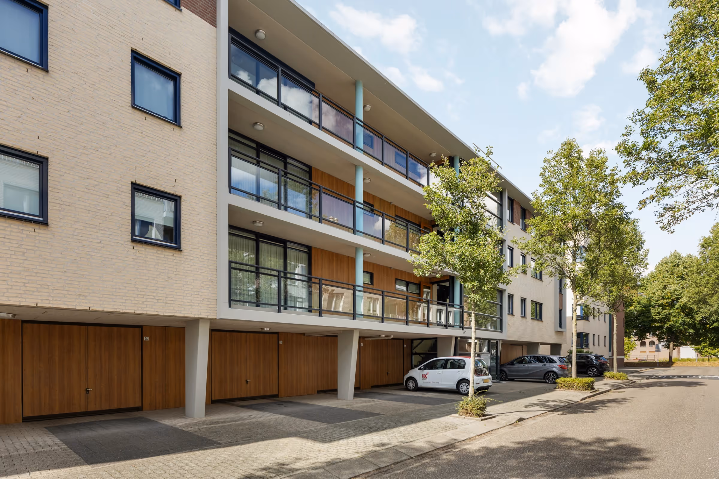 En last but not least heeft dit appartement nog een eigen garagebox. Deze box ligt op de begane grond van het gebouw en heeft een afmeting van 5,96 x 4,9 meter en kan gebruikt worden om een auto te parkeren én om fietsen en andere spullen te stallen. De garagebox beschikt over elektra en een elektrische poort. Tenslotte kunt u voor uw eigen garagebox 2 auto’s parkeren, ideaal toch.