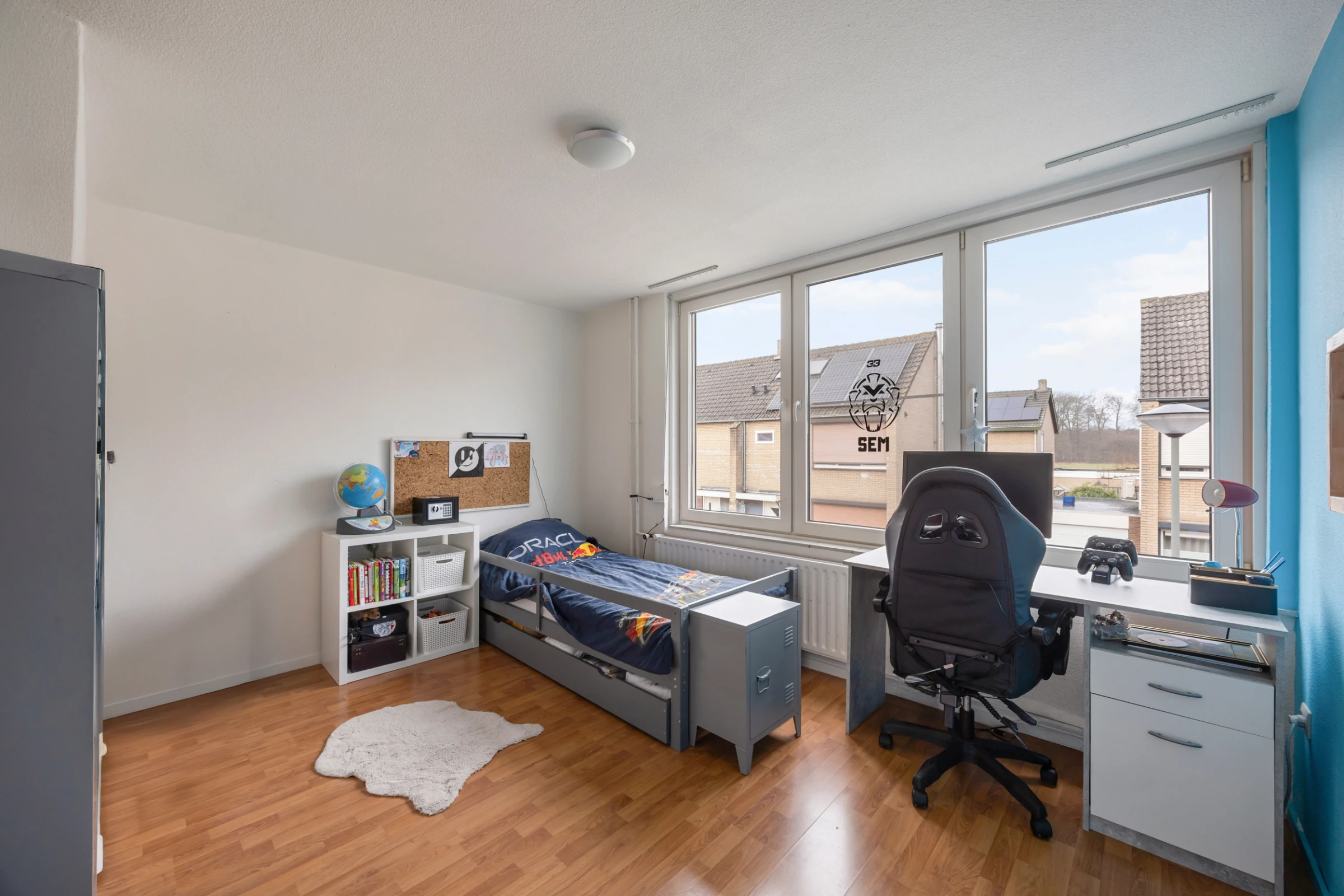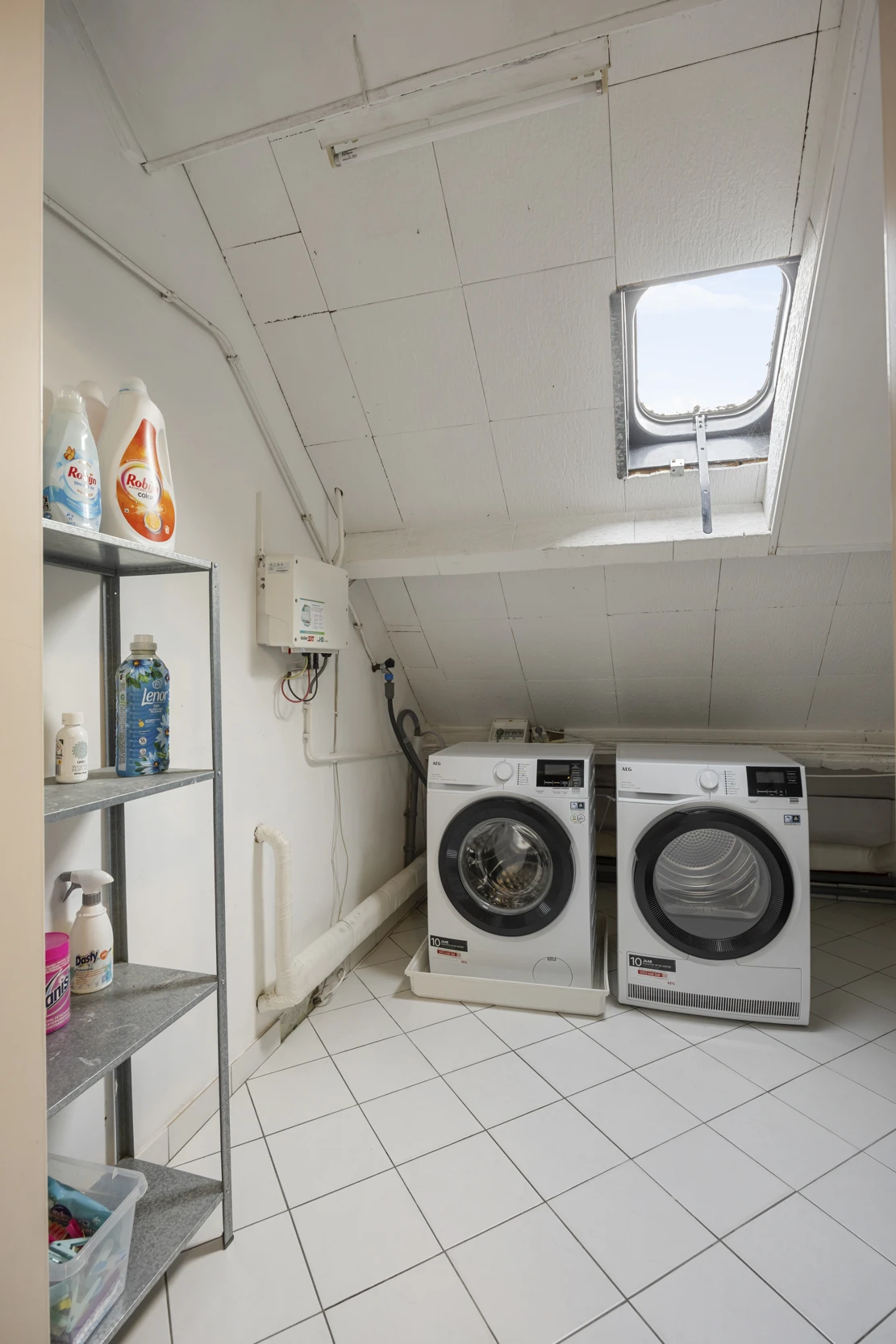 Via een vaste trap is de zolderverdieping bereikbaar. Deze verdieping heeft een overloop, een was- en CV ruimte en een extra (slaap)kamer. Ook is in de dakschuinte nog flink wat extra bergruimte aanwezig. De 4e slaapkamer is zo’n 14 m² groot. De wasruimte bevat ook de CV combiketel (Nefit, eigendom, 2017) en de collector van de zonnepanelen.